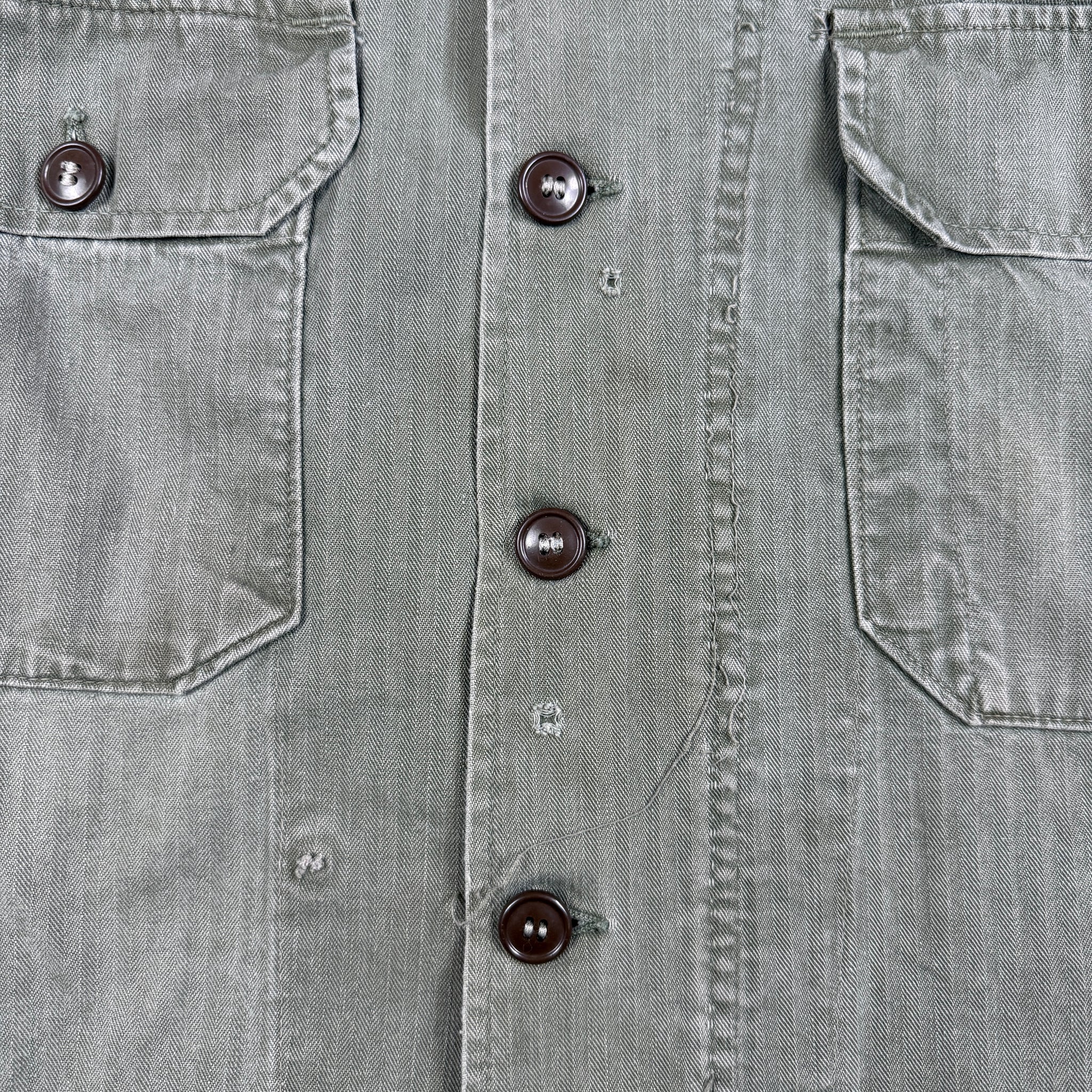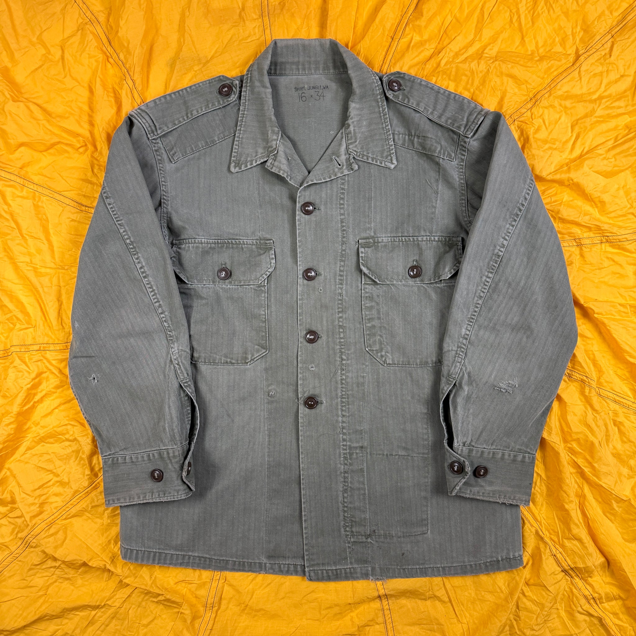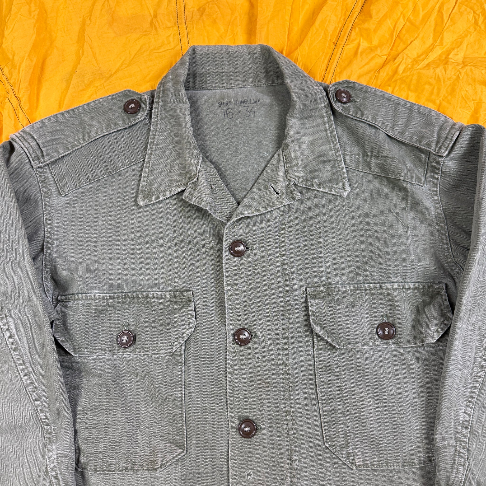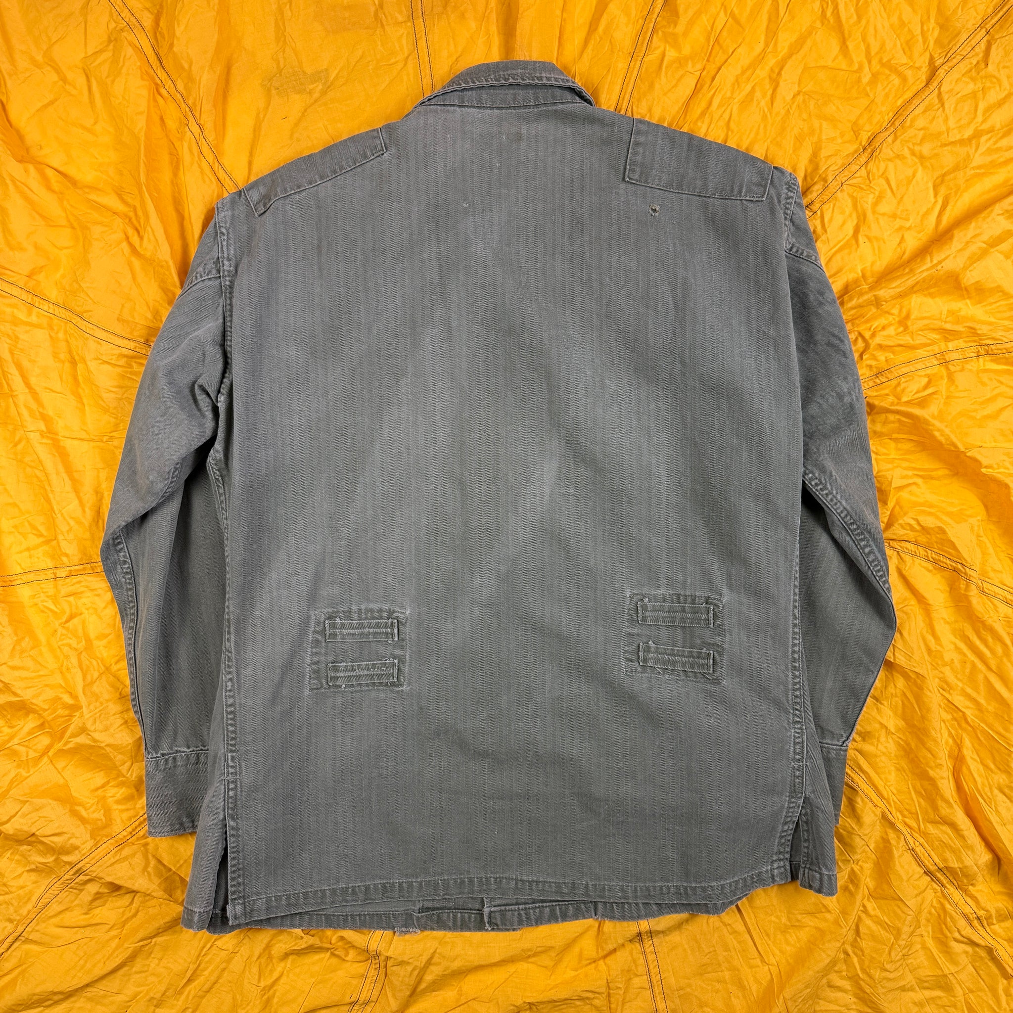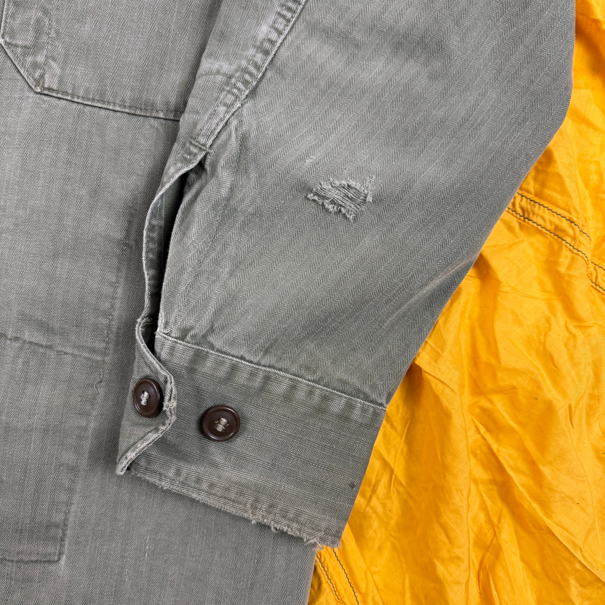 For all you HBT fans out there - I know there are a lot of you! So the story goes, after touring the entire CBI theatre in 1943, the British found they were woefully unprepared for the harsh reality of the jungle and designed the 44 pattern jungle shirt and pants, a very small number of which would be made by the Americans in their classic HBT as part of the War Aid program. There are some really unique design features including loops on the lower back of the shirt that hook onto the belt loops of the pants to prevent the shirt riding up, and mosquitoes getting in. As opposed to the US shirts, these have epaulettes, double buttons cuffs and collars.