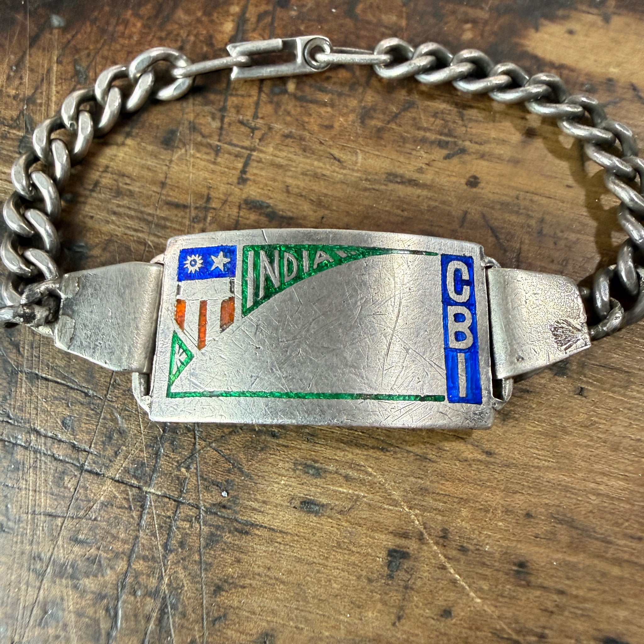 I've always been a huge fan of the jewellery produced by the cottage industry that sprang up to provide servicemen with mementos, and this is a great example. Some of the most collectible jewellery from the war was made in India, brightly enamelled bracelets & rings that bear the CBI insignia. These were purchase by soldiers and airman, serving in the CBI theatra, often by pilots flying the hump.