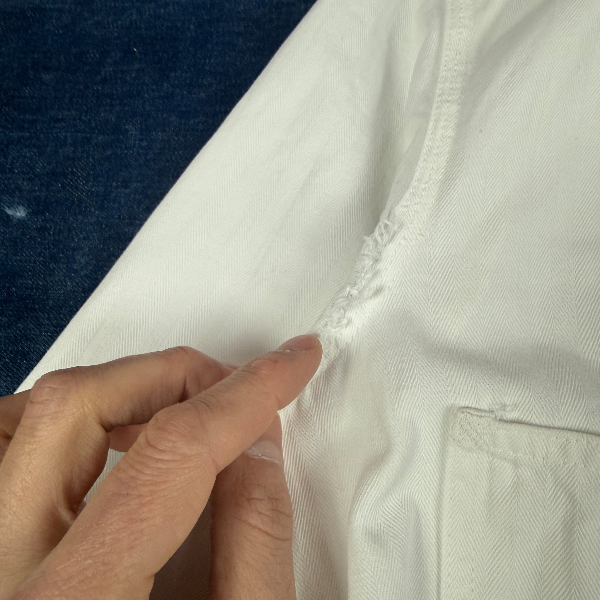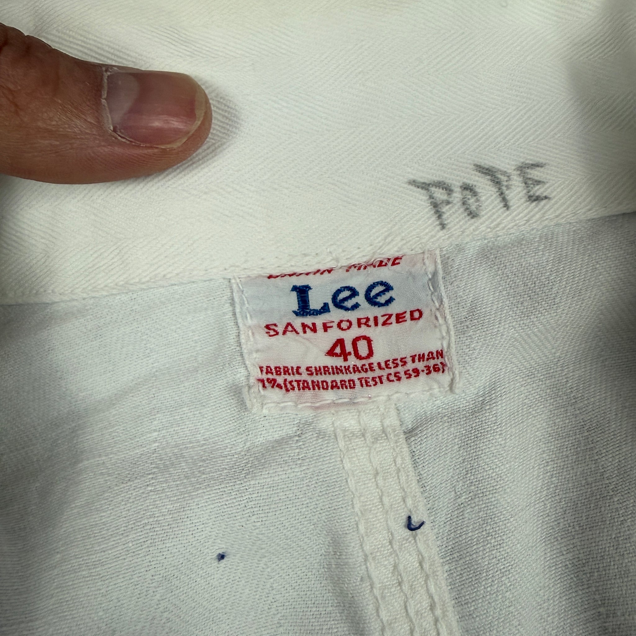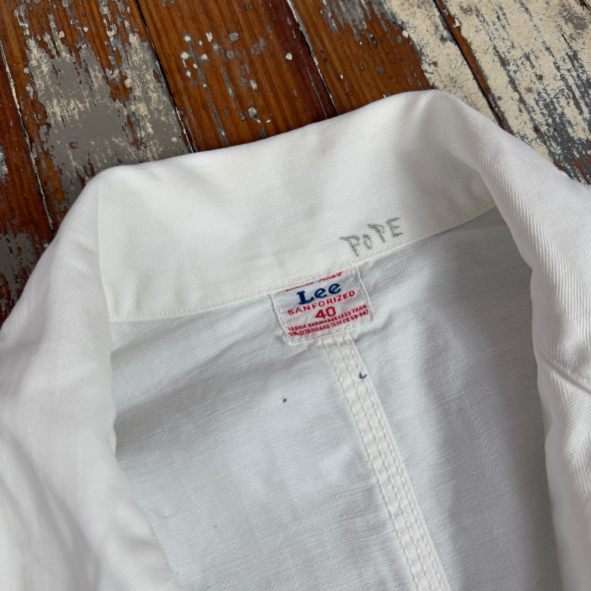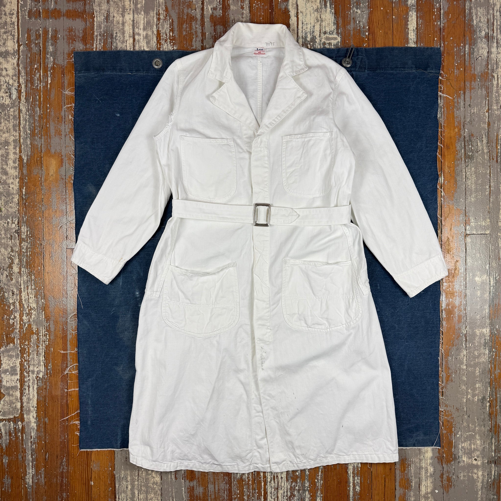 A classic piece of vintage workwear, the shop coat. This particular example comes from the 1940s, and comes complete with a lovely Lee House Mark tag to the back.
