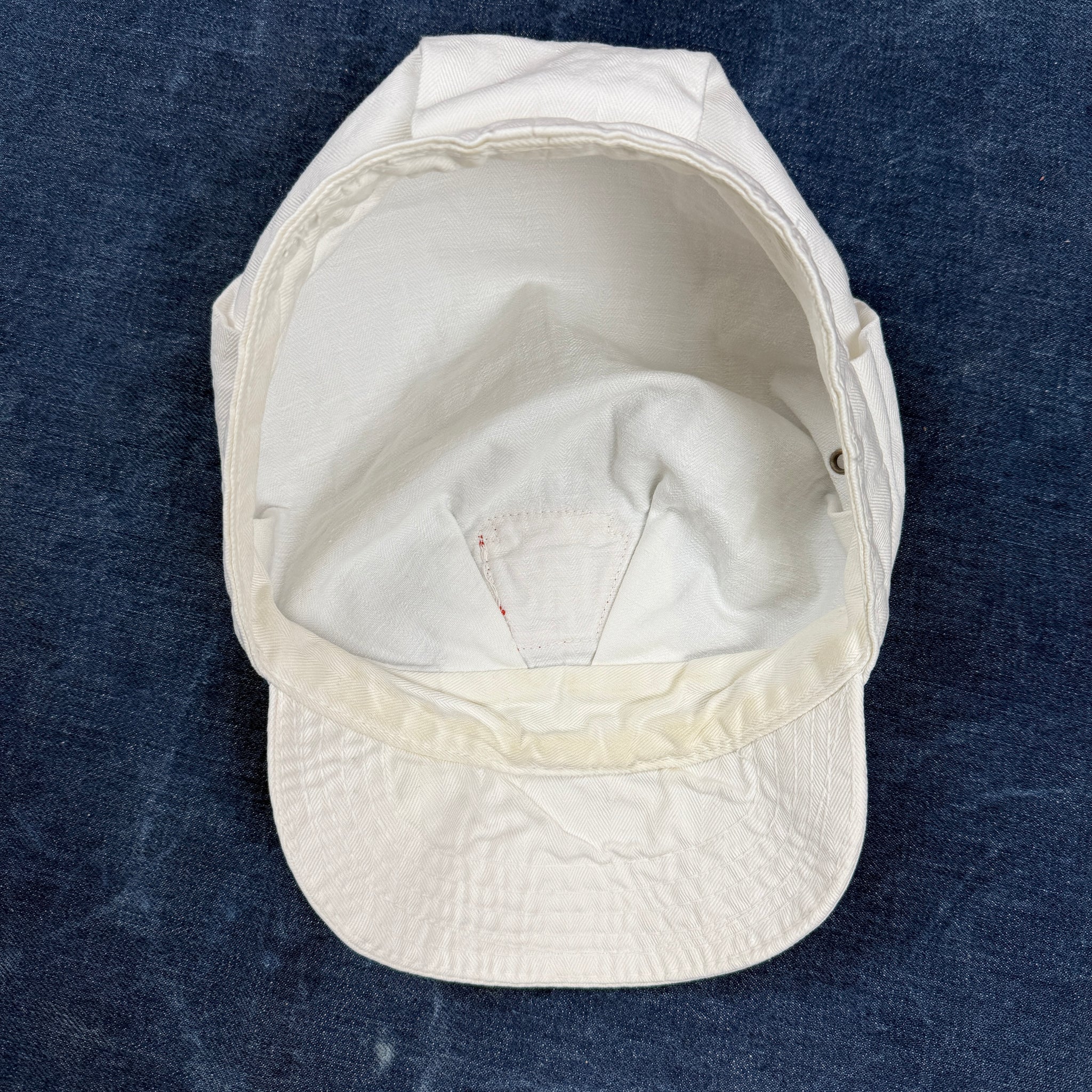 Few brands stand quite as tall as Lee in the workwear world. Founded in 1889 in Salina Kansas, Lee would be a pioneer in workwear design introducing the overalls, coveralls, and early zipper fly denim. This particular piece dates from the 1950s and comes with an original Pennsylvania Railroad patch to the peak. The label just features the brand mark, Union Made and Sanforized, and doesn't have the R or MR marks common on later pieces.