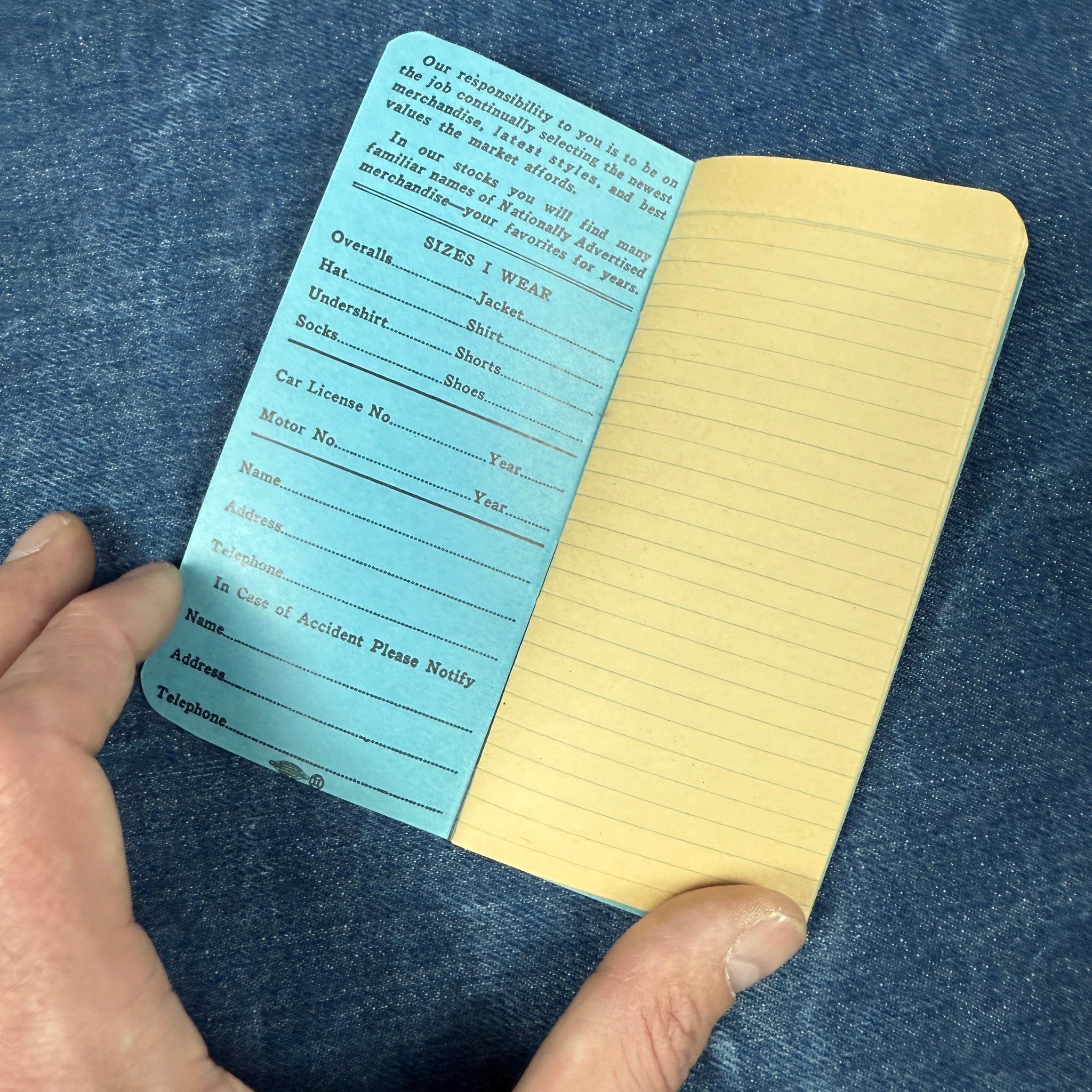 Another super fun piece of denim paraphernalia, a lovely promo notebook. This dates from the 1940s/50s and comes in unused condition with no notes!