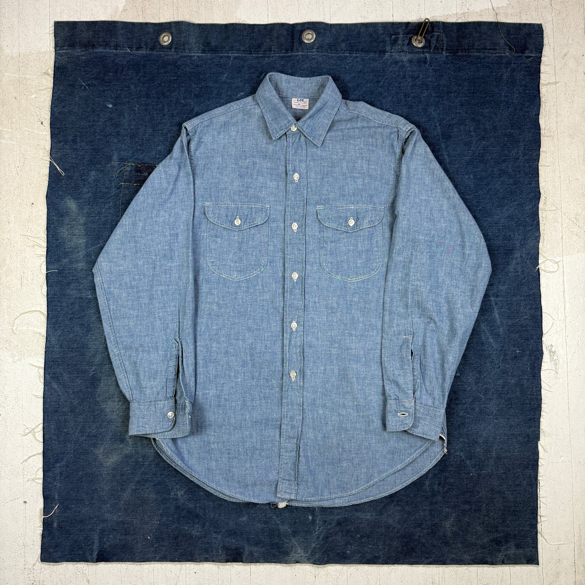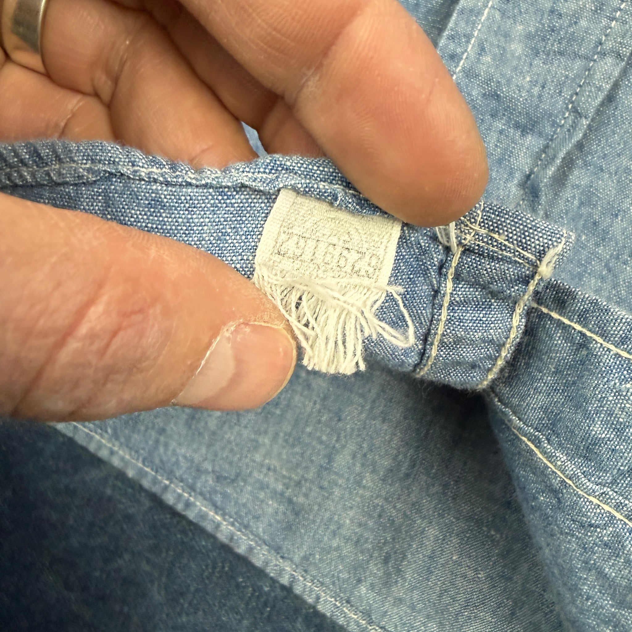 A super cool early1960s Lee chambray denim shirt in nice condition! Complete with a rare early 60s tag.