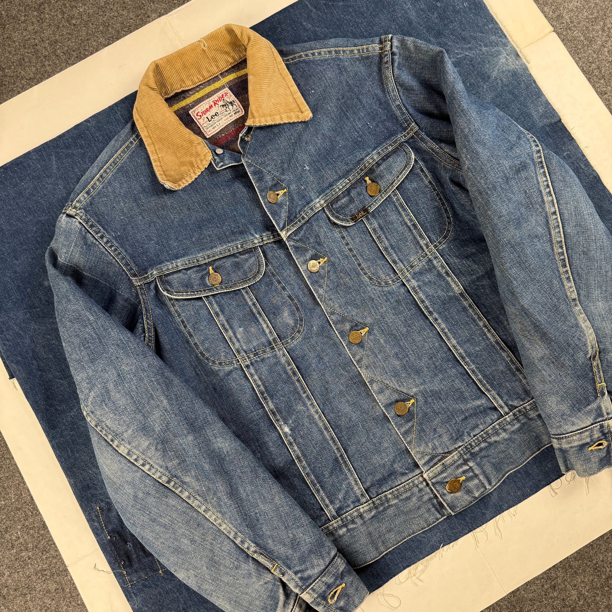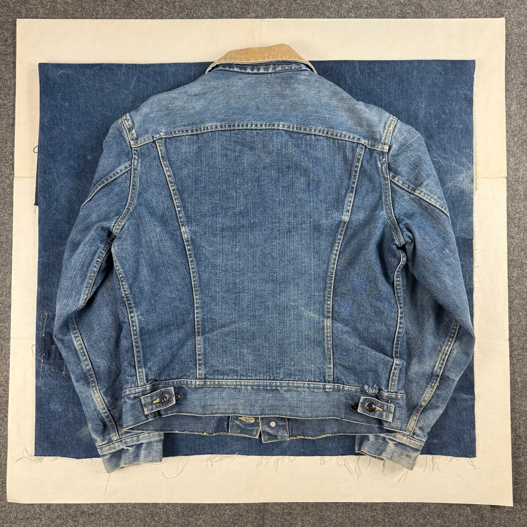Used but good. Fading across the denim is good, but blue still strong. The only issues are a small hole on the collar and a small hole on the lower back.