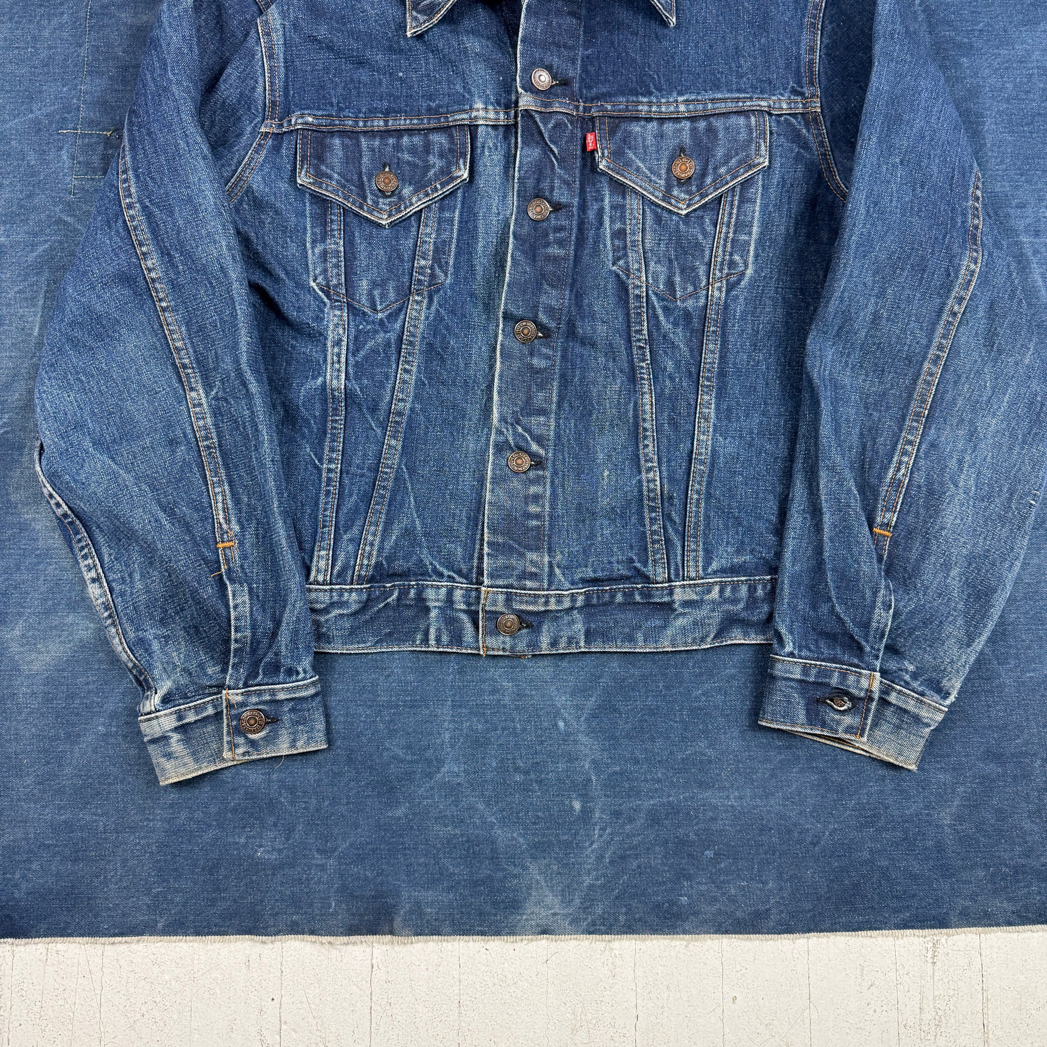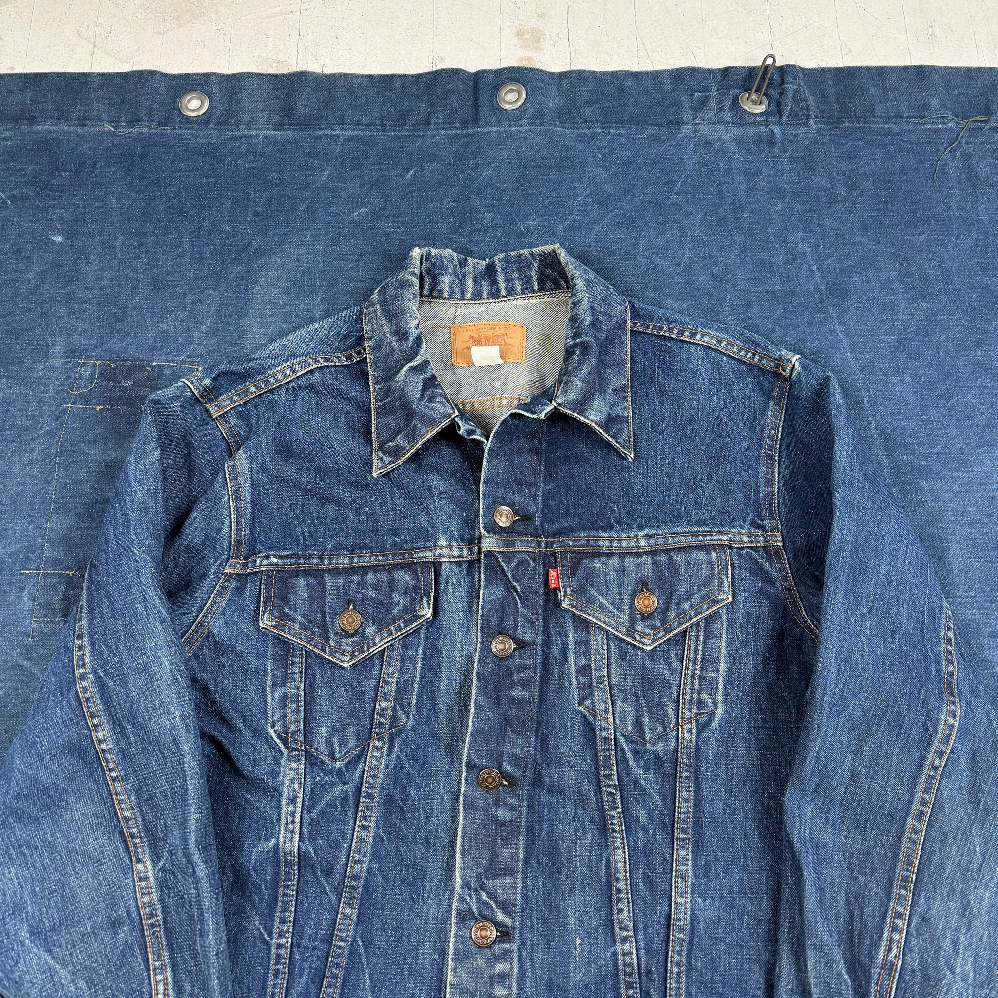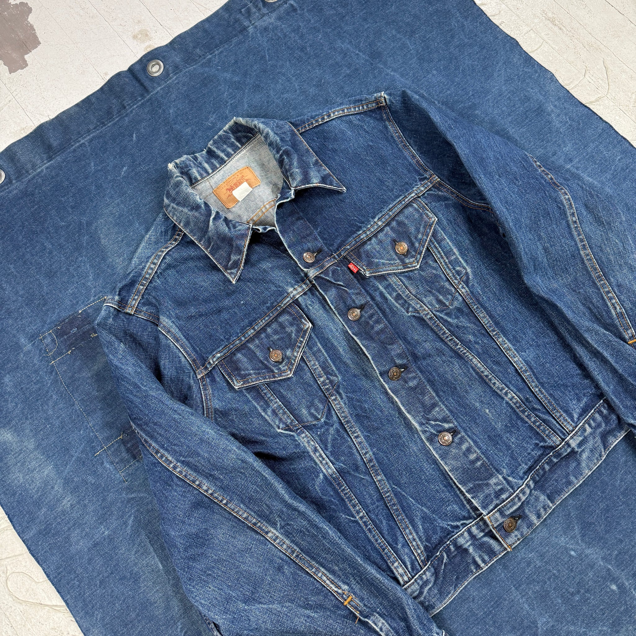 A true American icon, and one of the most fundamental pieces of vintage clothing. This is a Levis 70505 dating to the very early 1970s. This example features a "Small e" on the tag, 529 on the button backs, and is good used condition.