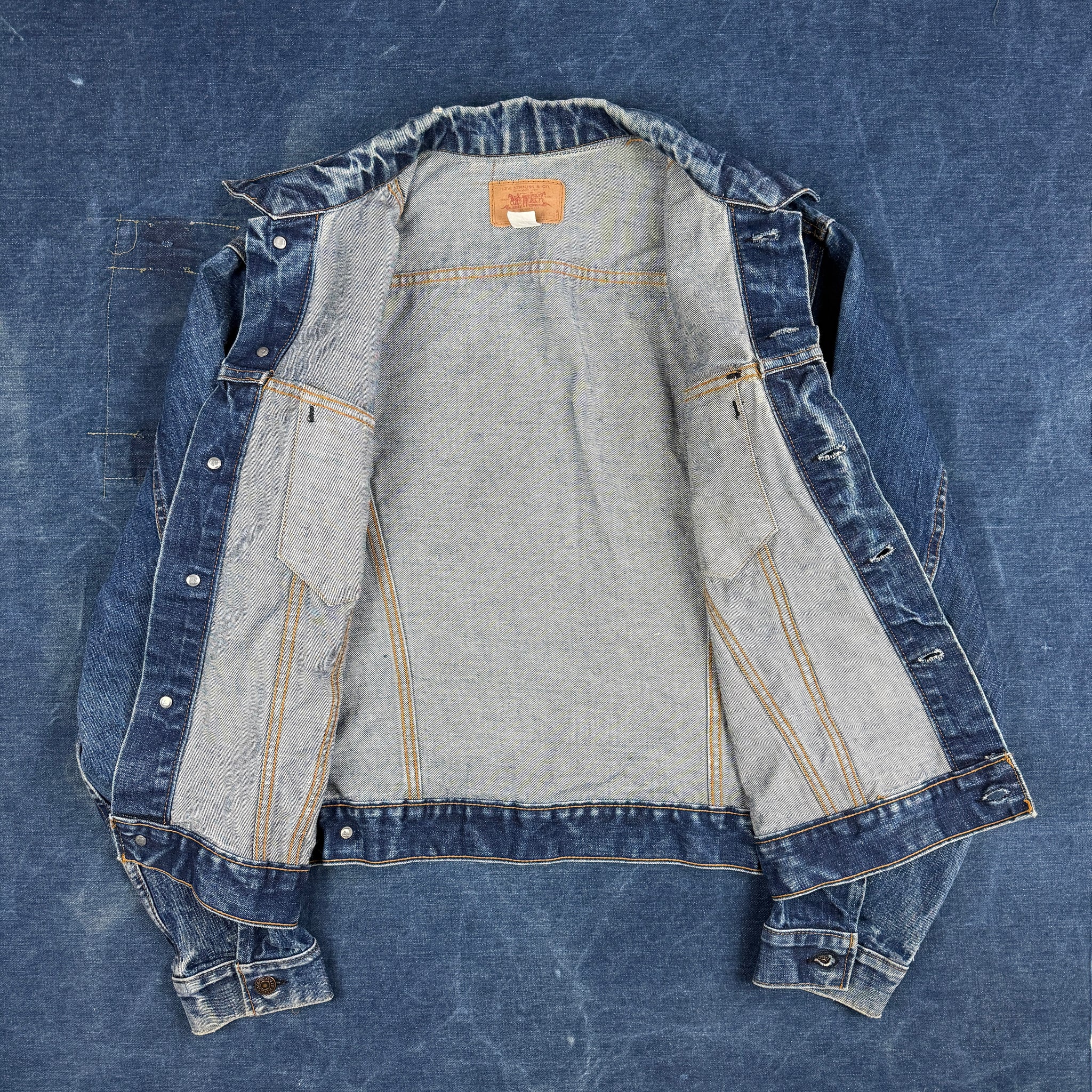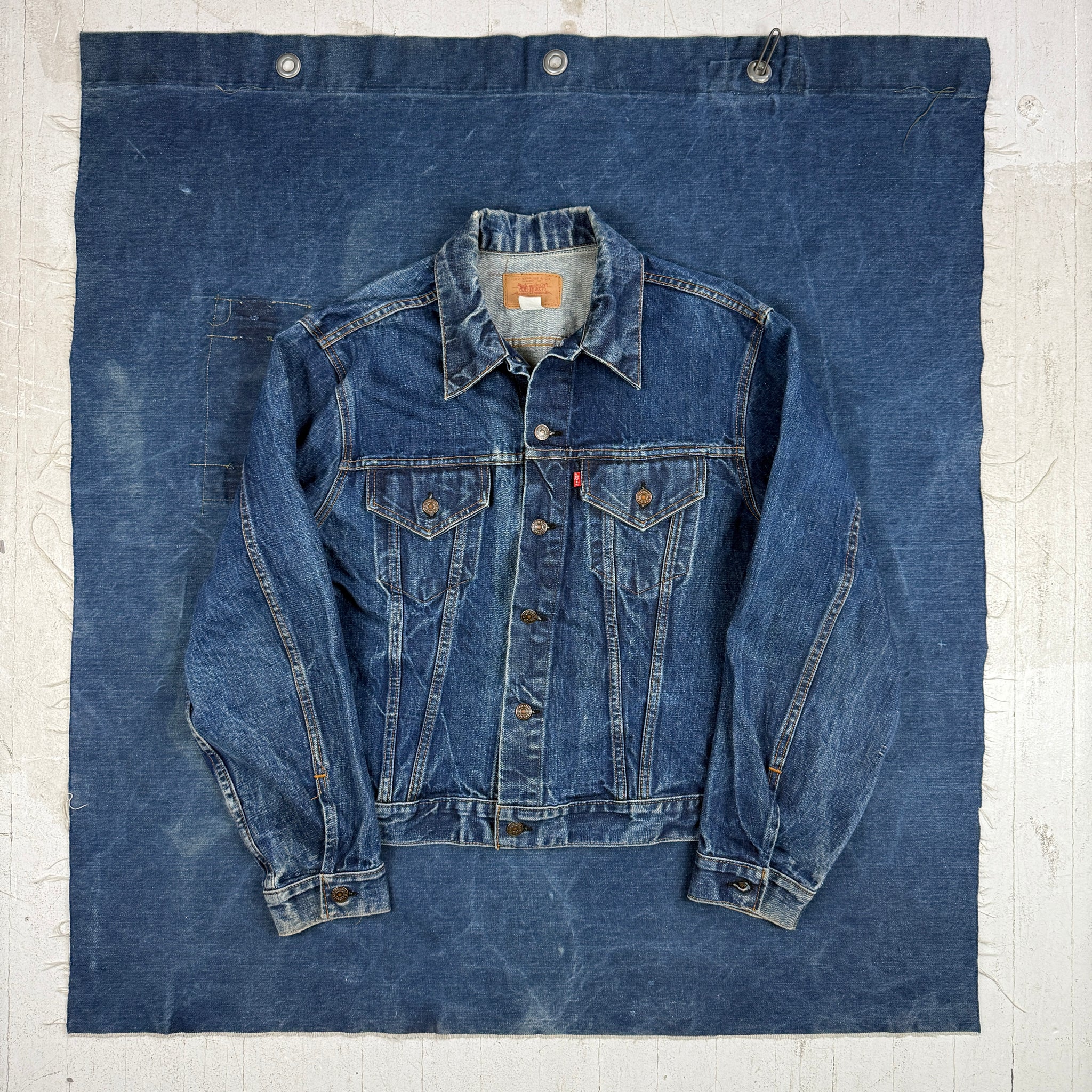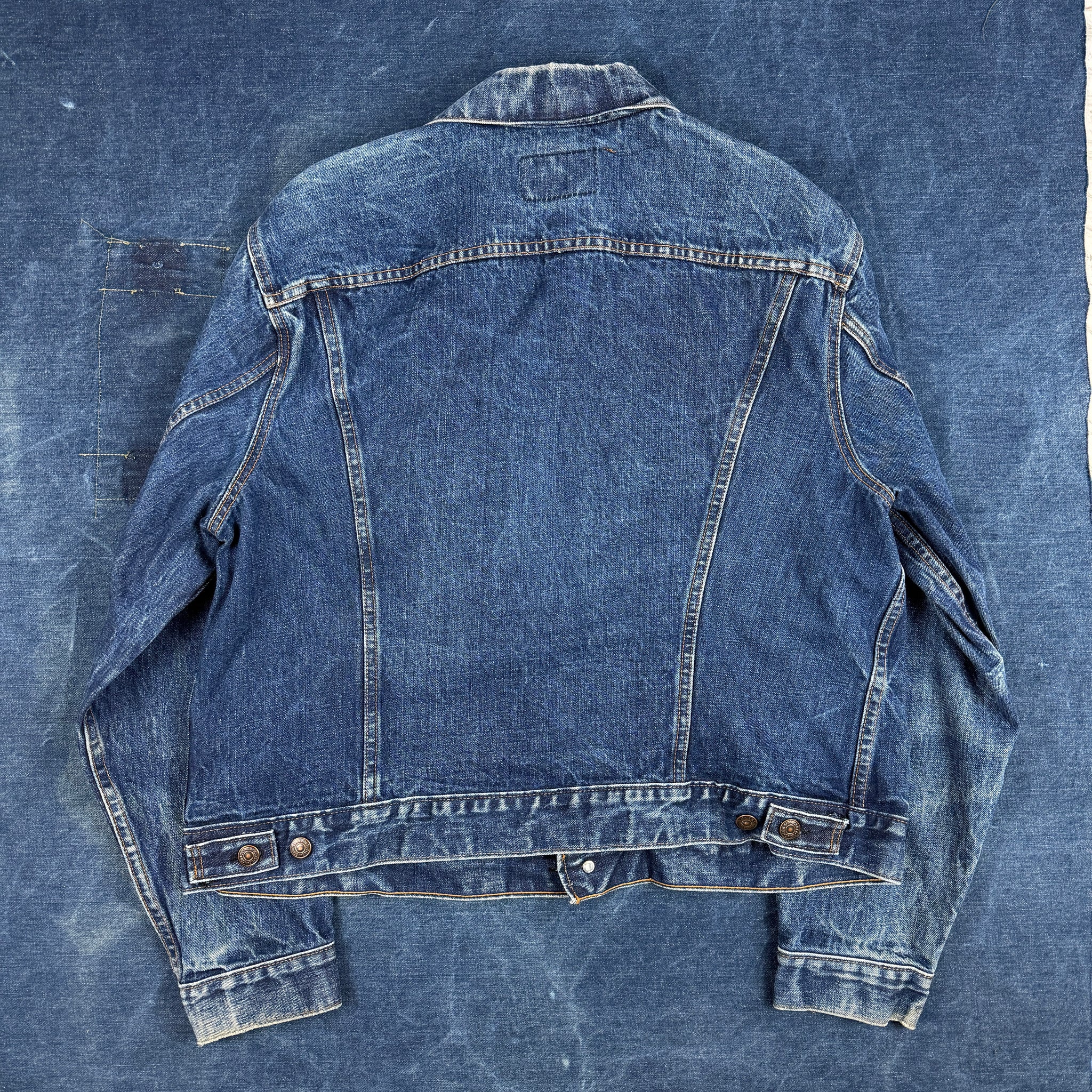 A true American icon, and one of the most fundamental pieces of vintage clothing. This is a Levis 70505 dating to the very early 1970s. This example features a "Small e" on the tag, 529 on the button backs, and is good used condition.