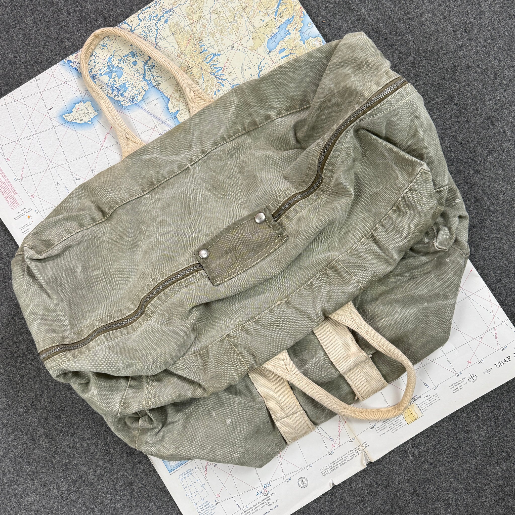 A super cool pre/early war Naval Aviators bag that were quickly replaced by the more common AN6505. These were made exclusively for the Navy at the Naval Aircraft Factory.