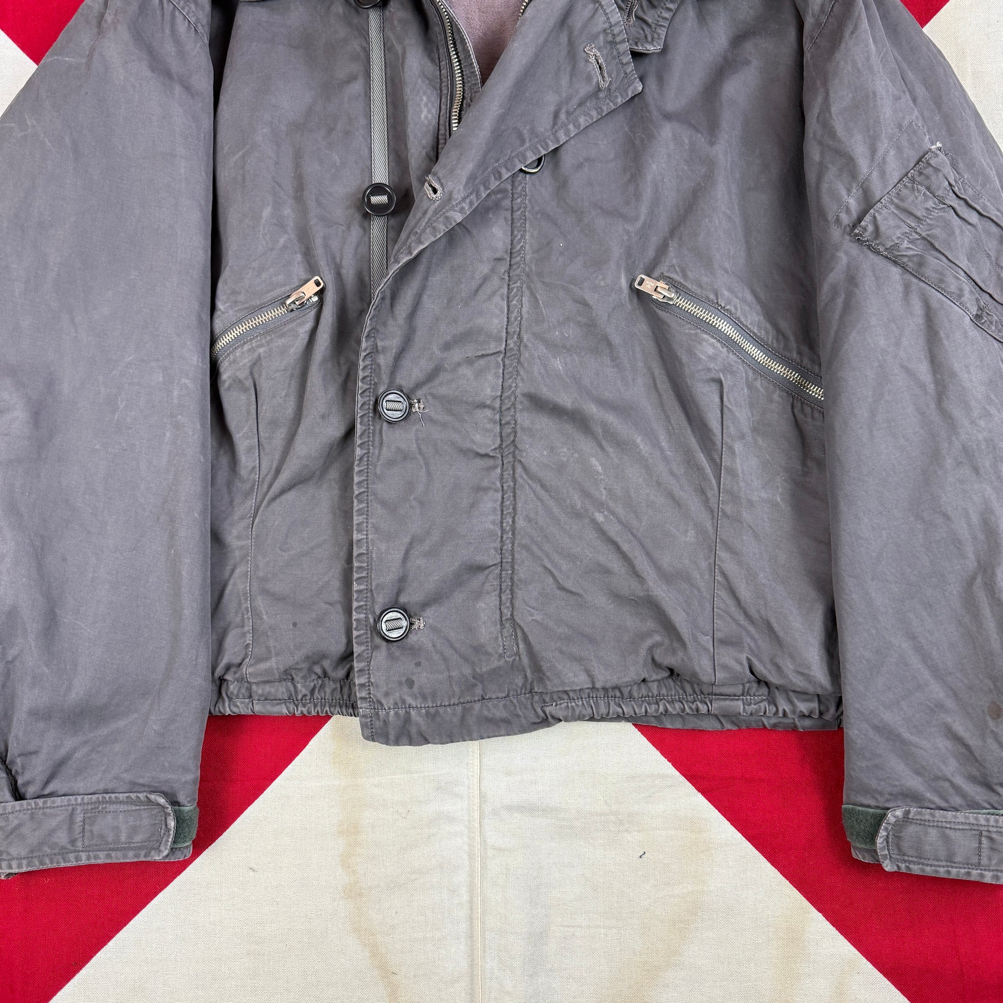 A British vintage classic, and all-round wonderful jacket. Of all the pieces I own, I wear this the most! Developed in the late 60s to replace the draughty 1951 pattern parka, the Mk3 jacket would come with a matching pair of trousers, and were specifically designed for the Vulcan, Lightning and other jets of the age. Made of a windproof cotton gaberdine outer layer, mesh insulation and a ventile lining layer, these jackets are surprisingly warm and very light. So many details on these from the newey zips, to the hidden hood, tape buttons and intact 'fork' that fits under the crotch to stop the jacket riding up whilst in flight. These were famously worn by the crew of the Nostromo in the 1979 film Alien.