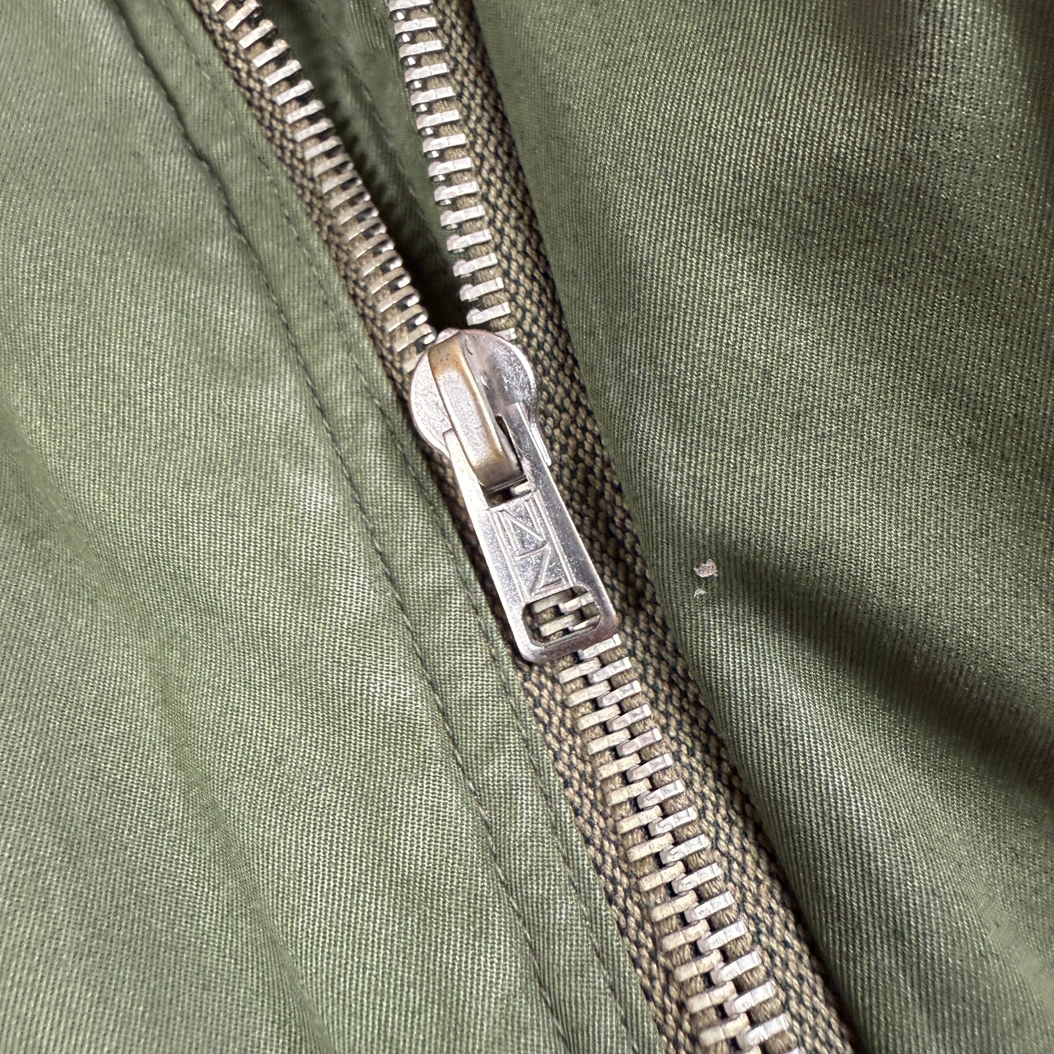 A British vintage classic, and all-round wonderful jacket. Of all the pieces I own, I wear this the most! Developed in the late 60s to replace the draughty 1951 pattern parka, the Mk3 jacket would come with a matching pair of trousers, and were specifically designed for the Vulcan, Lightning and other jets of the age. Made of a windproof cotton gaberdine outer layer, mesh insulation and a ventile lining layer, these jackets are surprisingly warm and very light. So many details on these from the newey zips, to the hidden hood, tape buttons and intact 'fork' that fits under the crotch to stop the jacket riding up whilst in flight.