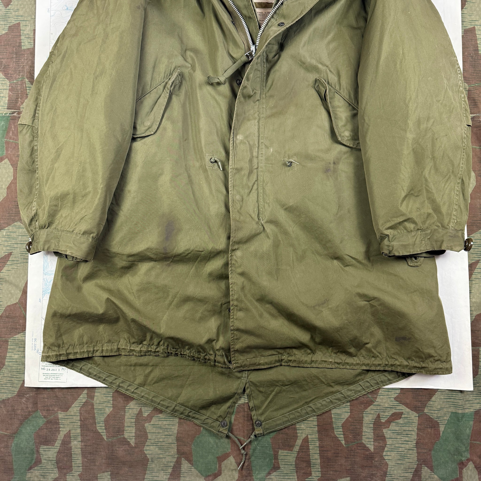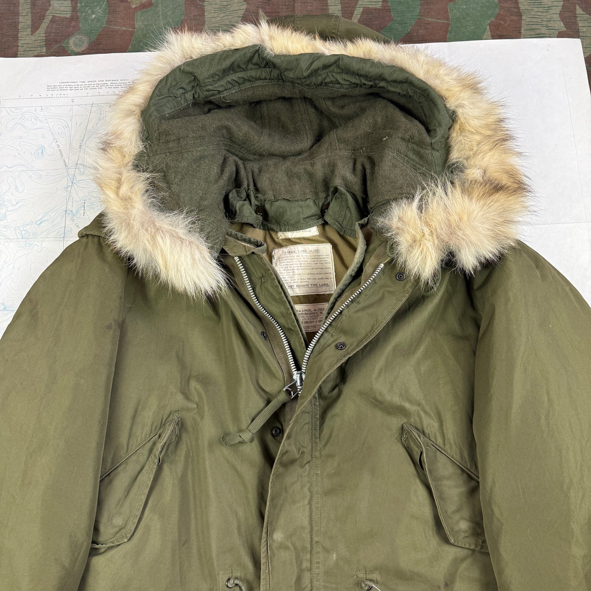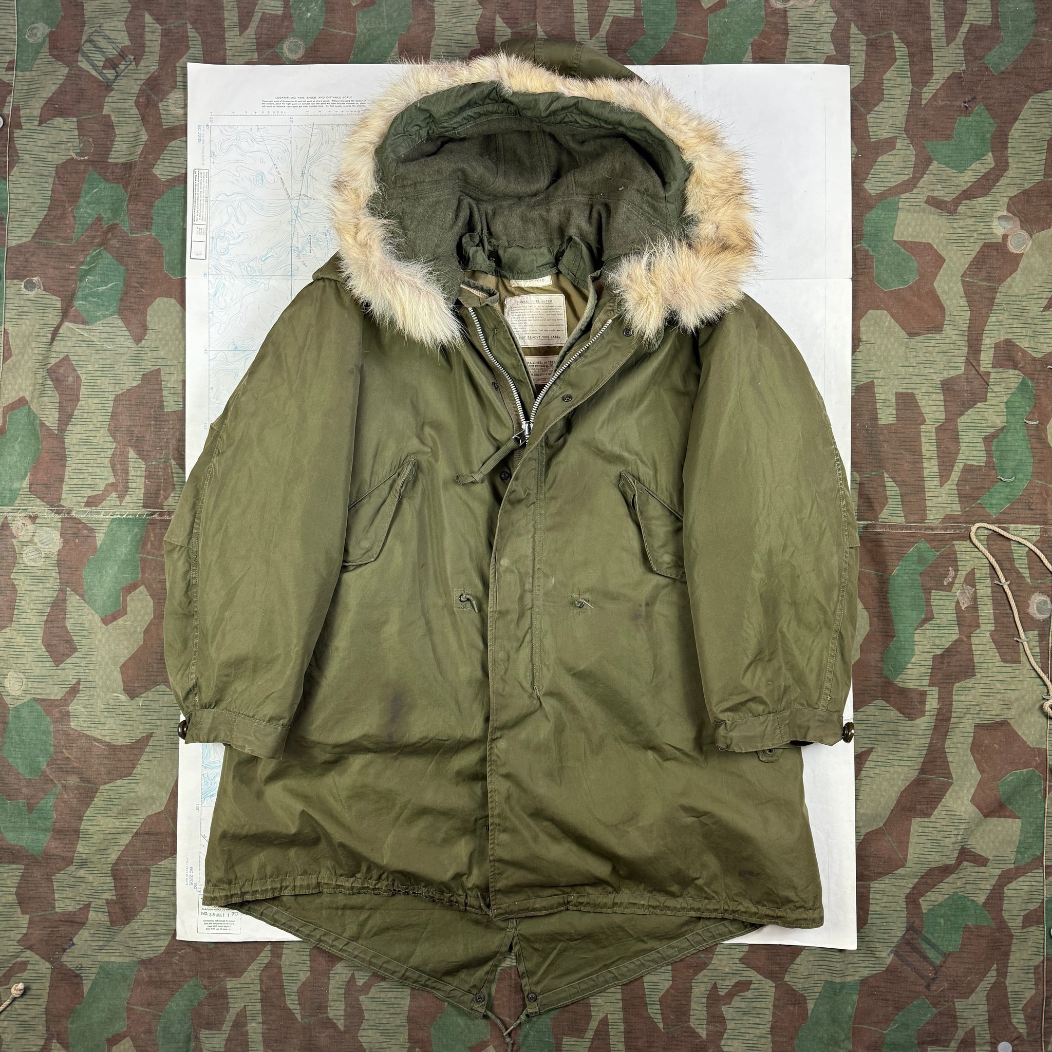 As the war came to a close the US was becoming increasingly aware of a new threat in the east , and set about a programme of modernisation to fight what could potentially become a much colder war. The M47 parka really just updated WW2 models, but in the M48 the Army found a great combination. A heavy windproof shell and interchangeable lining that could be swapped out depending upon temperature. Both the M47 & M48 would find use in the early years of the Korean War, but as the US faced the reality of fighting a larger war in freezing temperatures, the M48 proved too complex and costly to produce. And with the M1951 an enduring classic was born. Made of a three piece set, shell, liner and hood, the garment could be quickly produced to meet the needs of a rather cold army in Asia.