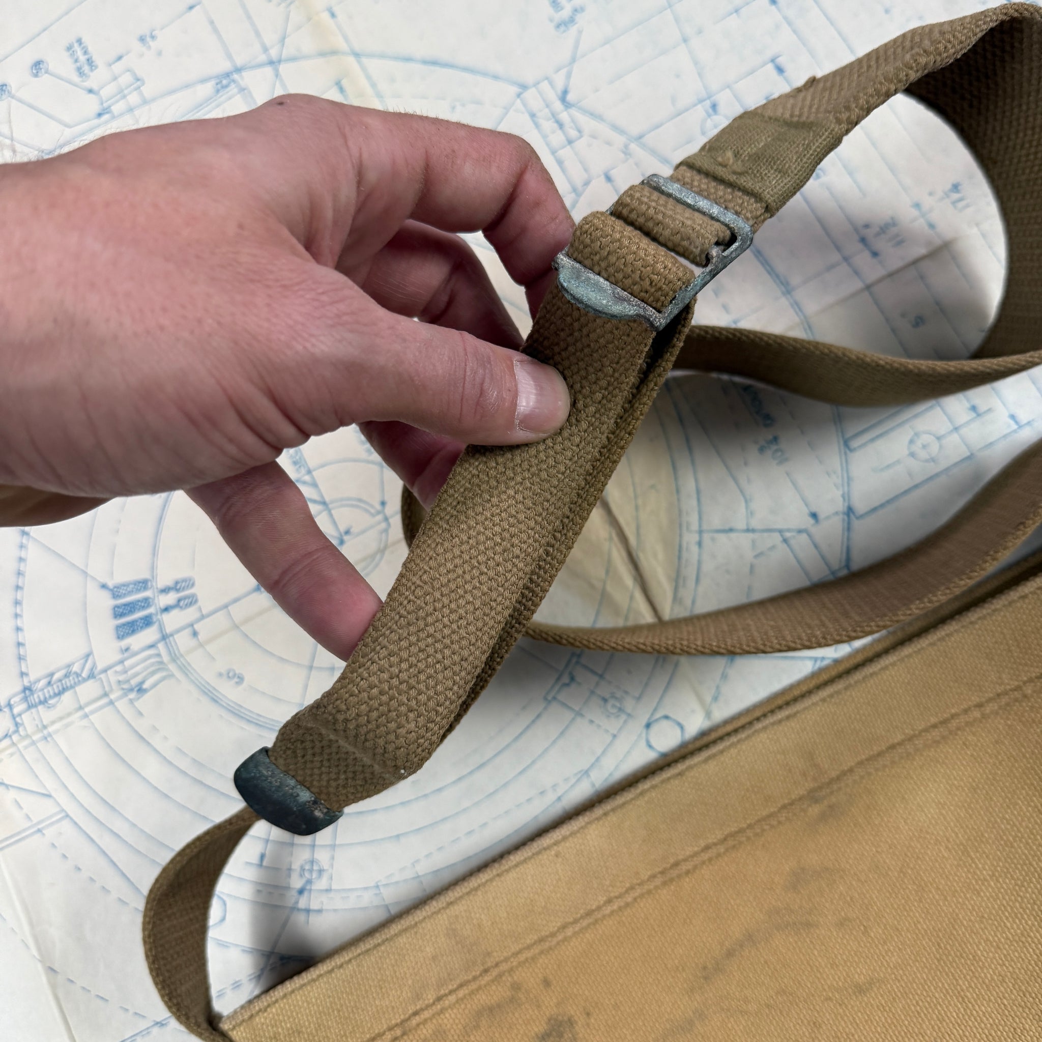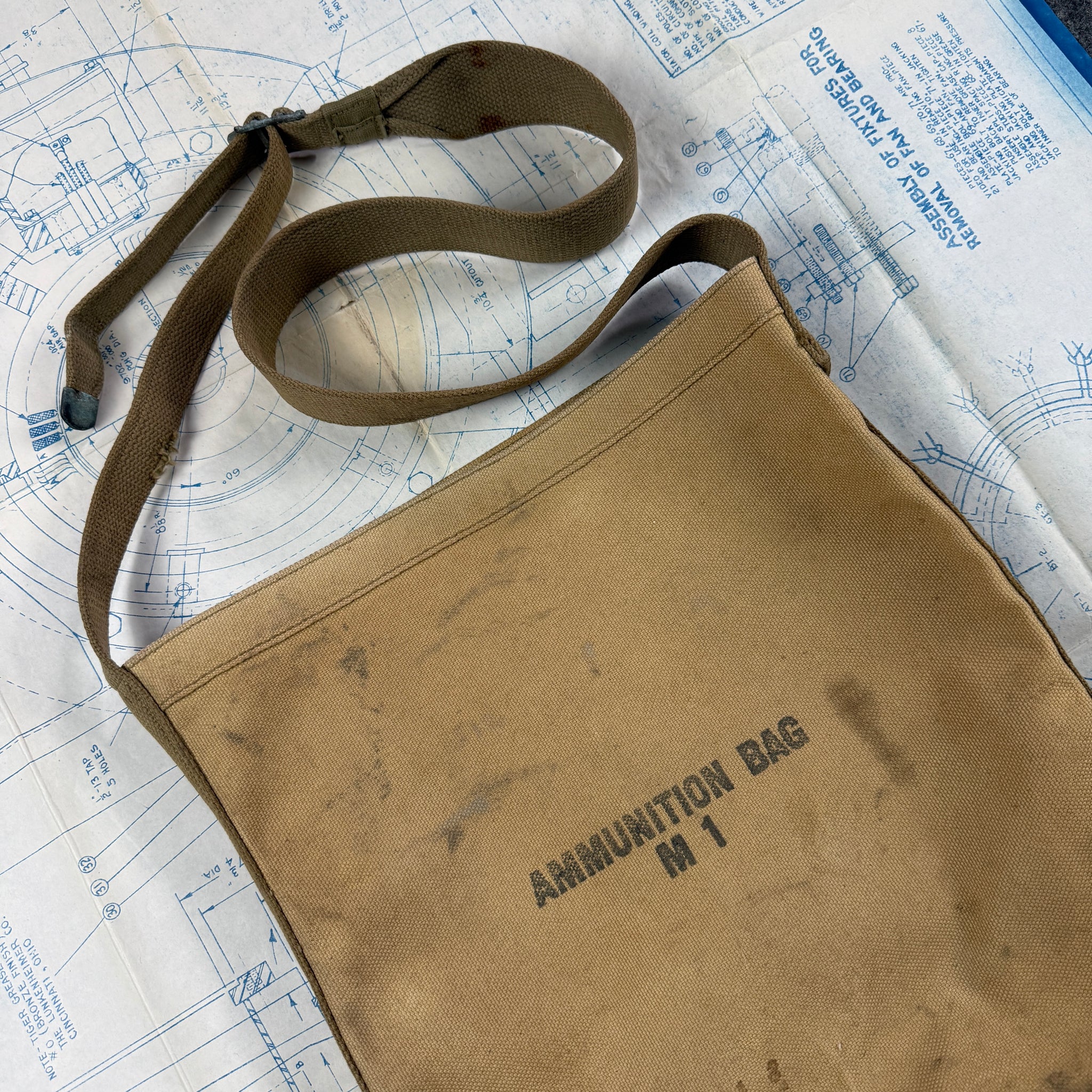 A really rather rare tote style bag used US infantry to carry mortar shells and ammunition. These seem to have been replaced quickly in service by a far more common version with a flap closure and are now extremely hard-to-find.