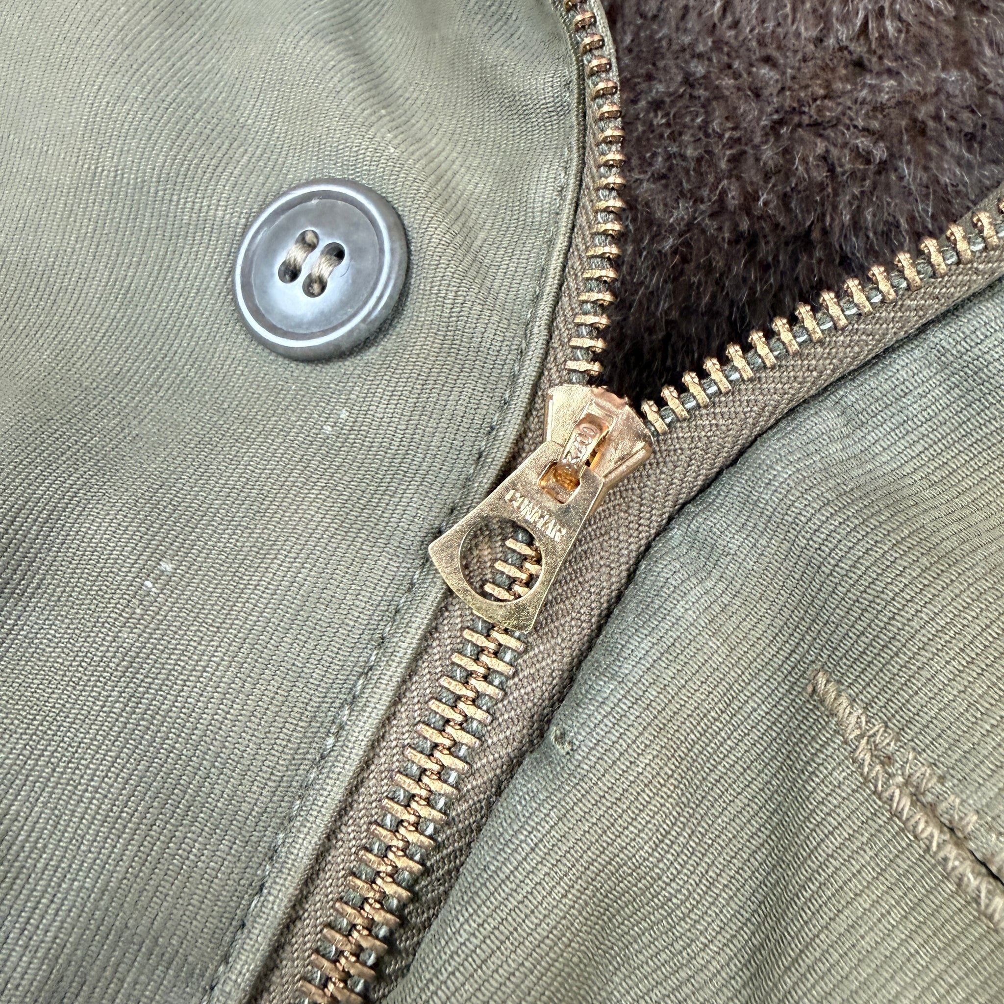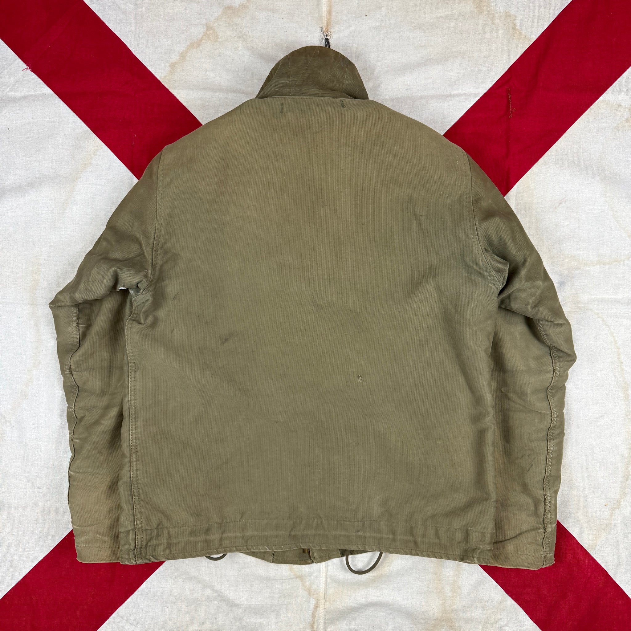 In early 1943 the Navy introduced a new line of redesigned clothing to help it meet its requirements across multiple theatres and areas of operations. Designated with a N (N-1, N-2 and N-3) standing for Navy, this range of clothing would improve upon previous designs, and prepare the navy for the amphibious warfare required in pacific and to land in occupied Europe. The N-1 deck jacket was a vast improvement on the previous blue jackets, retaining the thick jungle cloth, but changing to a khaki colour more suitable as camouflage. It returned to a zip closure, improved the fit, changed to a thick alpaca lining and included a draw string around the waist. For anyone who has owned both will tell you, these are much better jackets to wear in the cold.