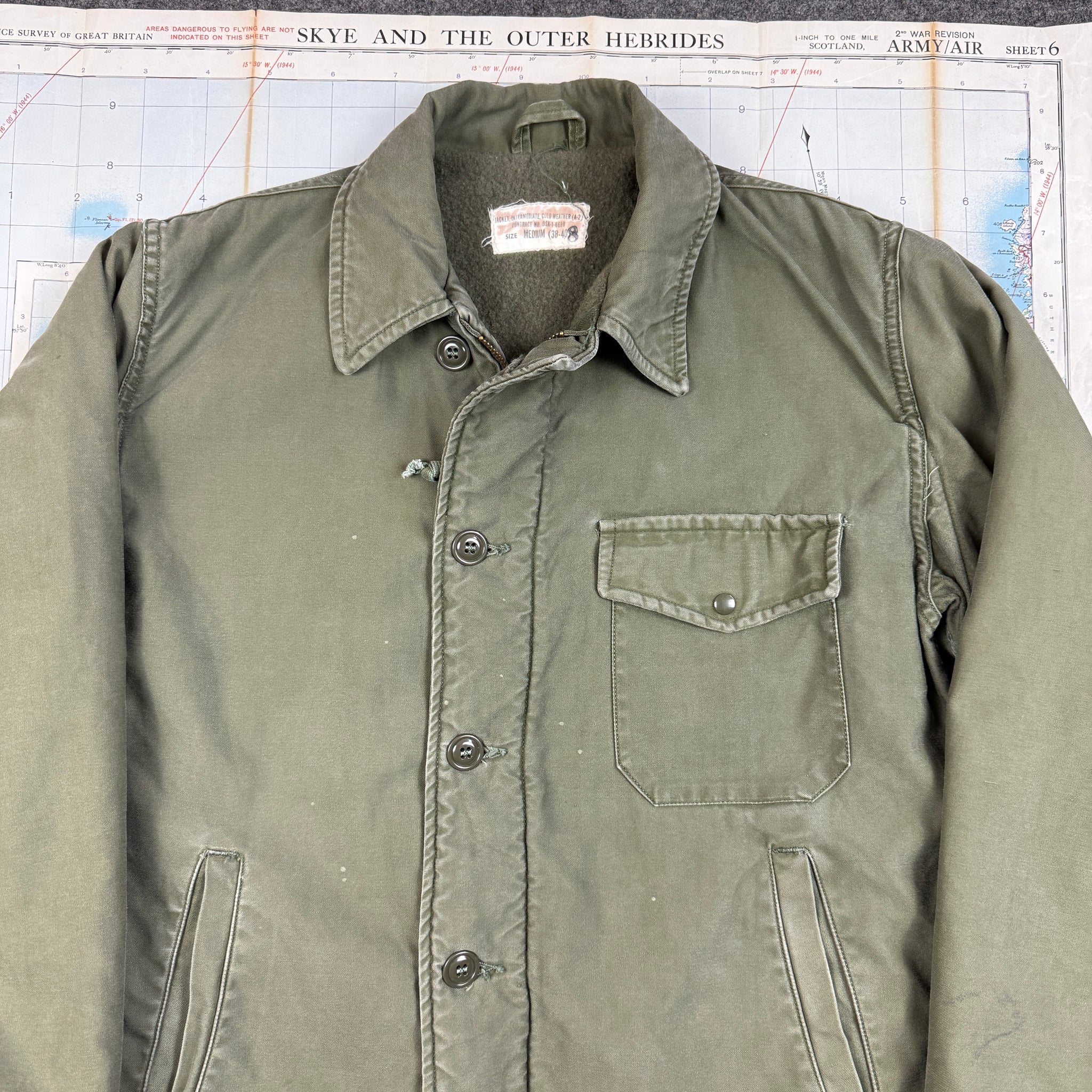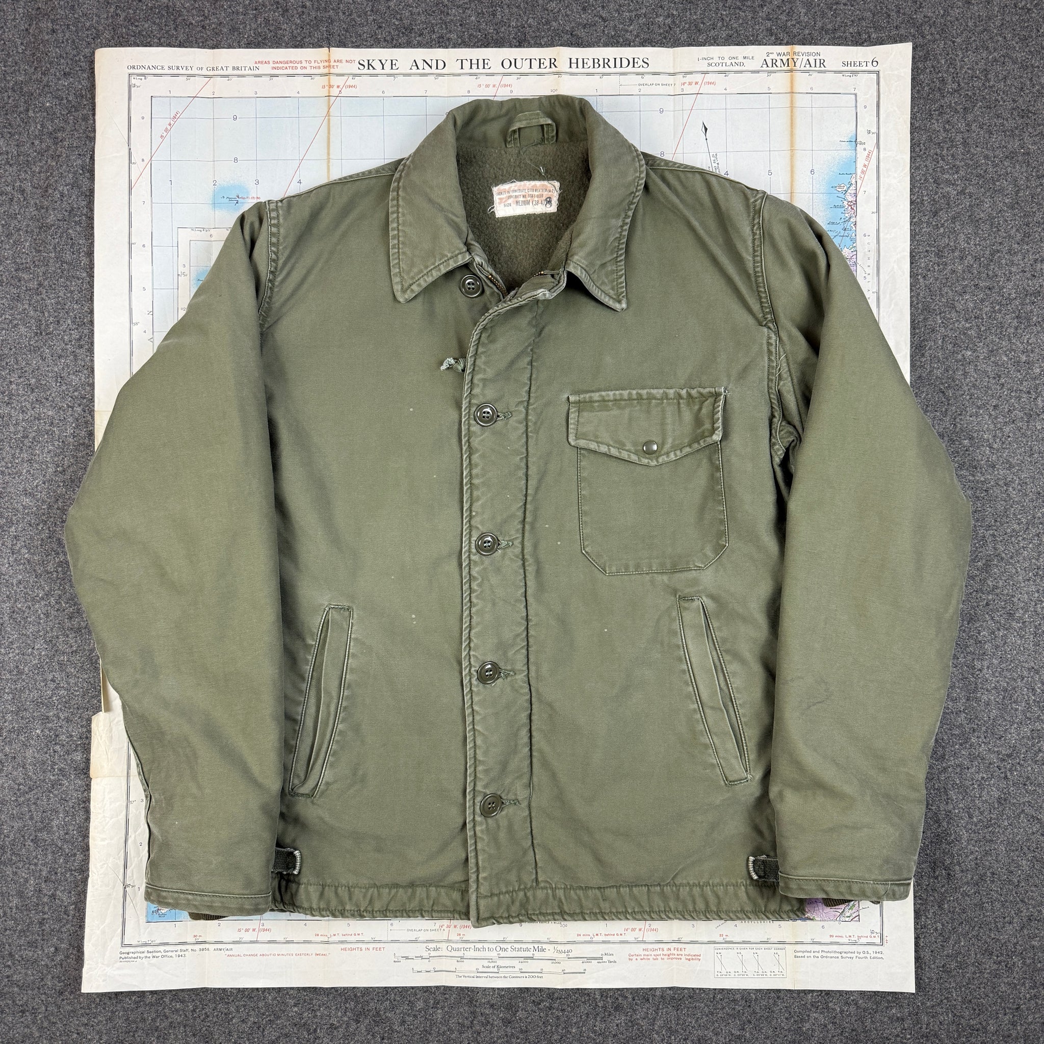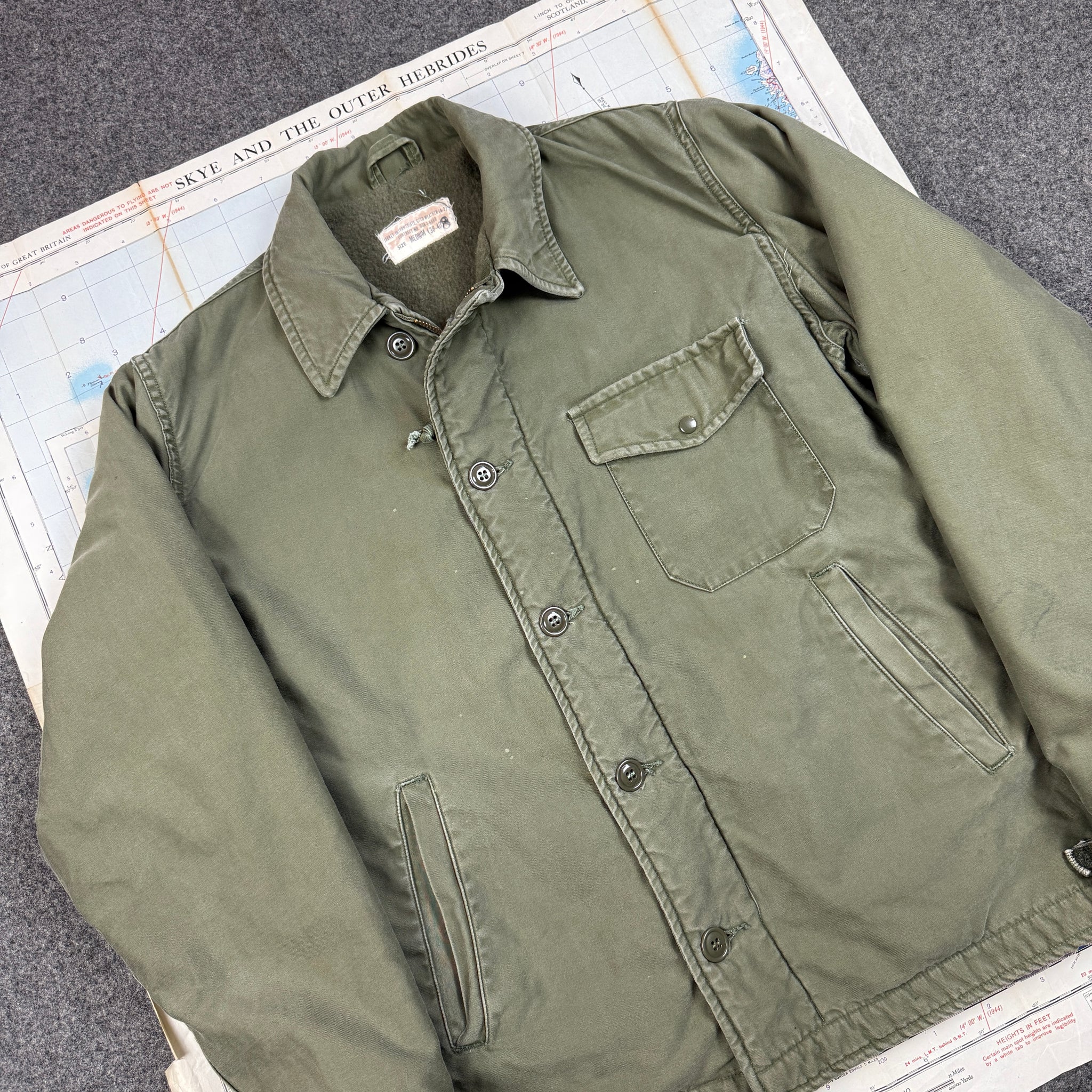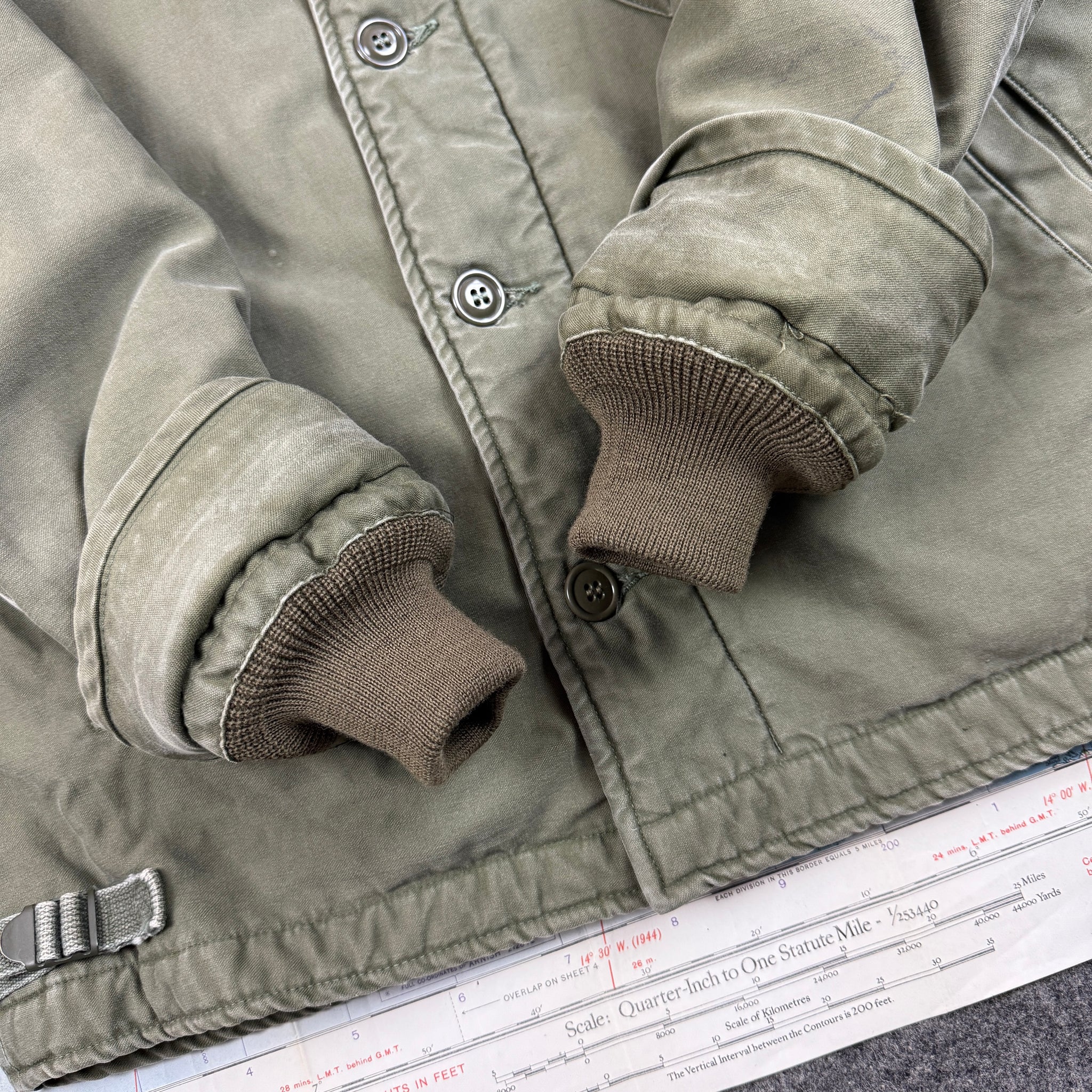 The A2 deck jacket, a classic amongst the vintage community and a perpetual favourite design. This example is from a 1965 contract.