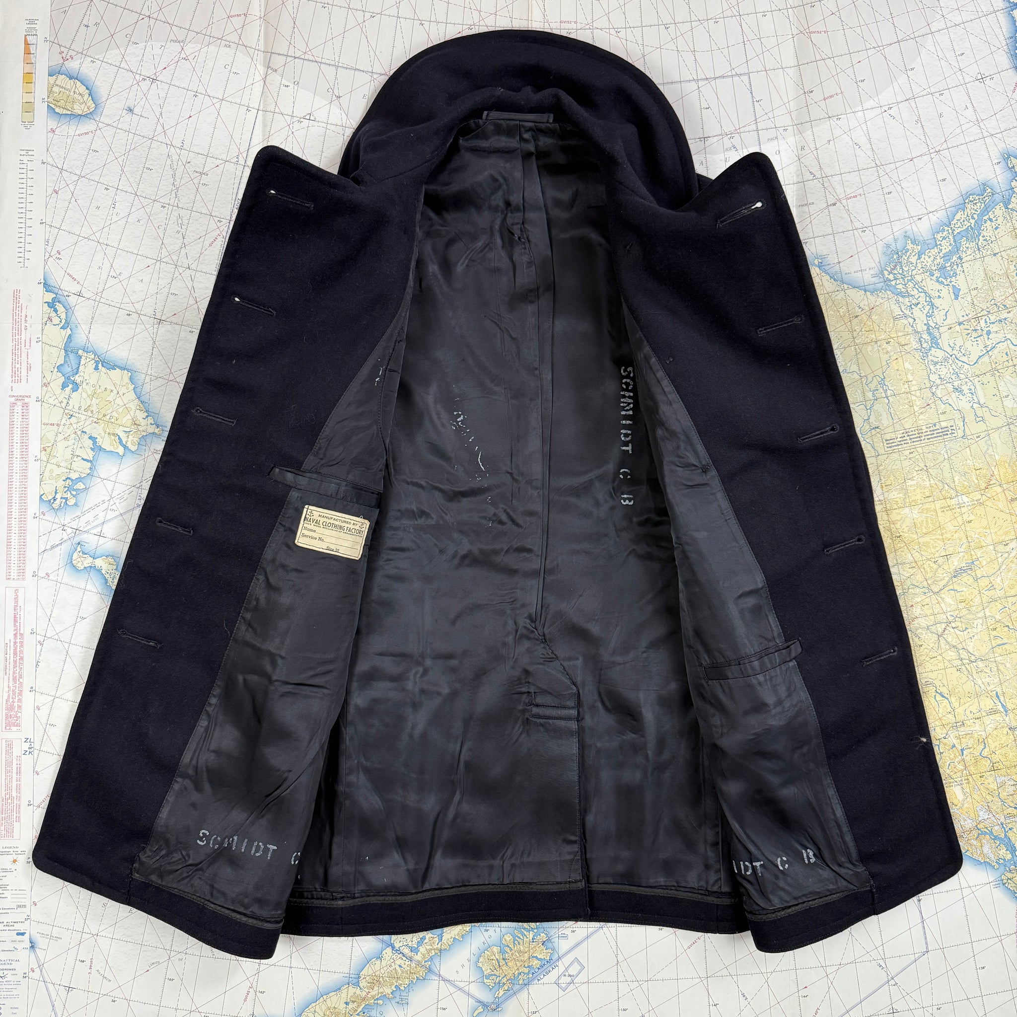 This particular example is from the heyday of the peacoat, WW2. The tag would make this a later war example.