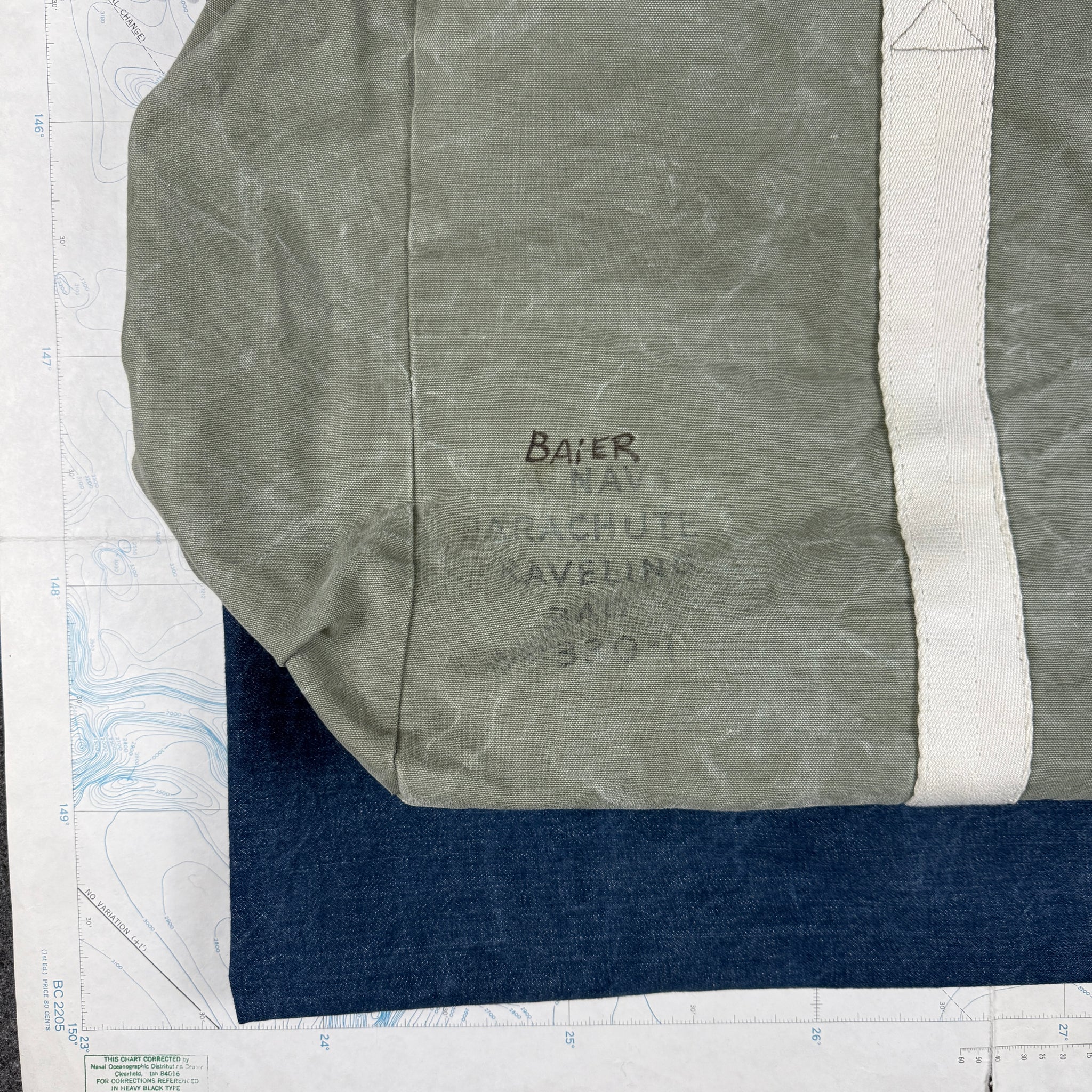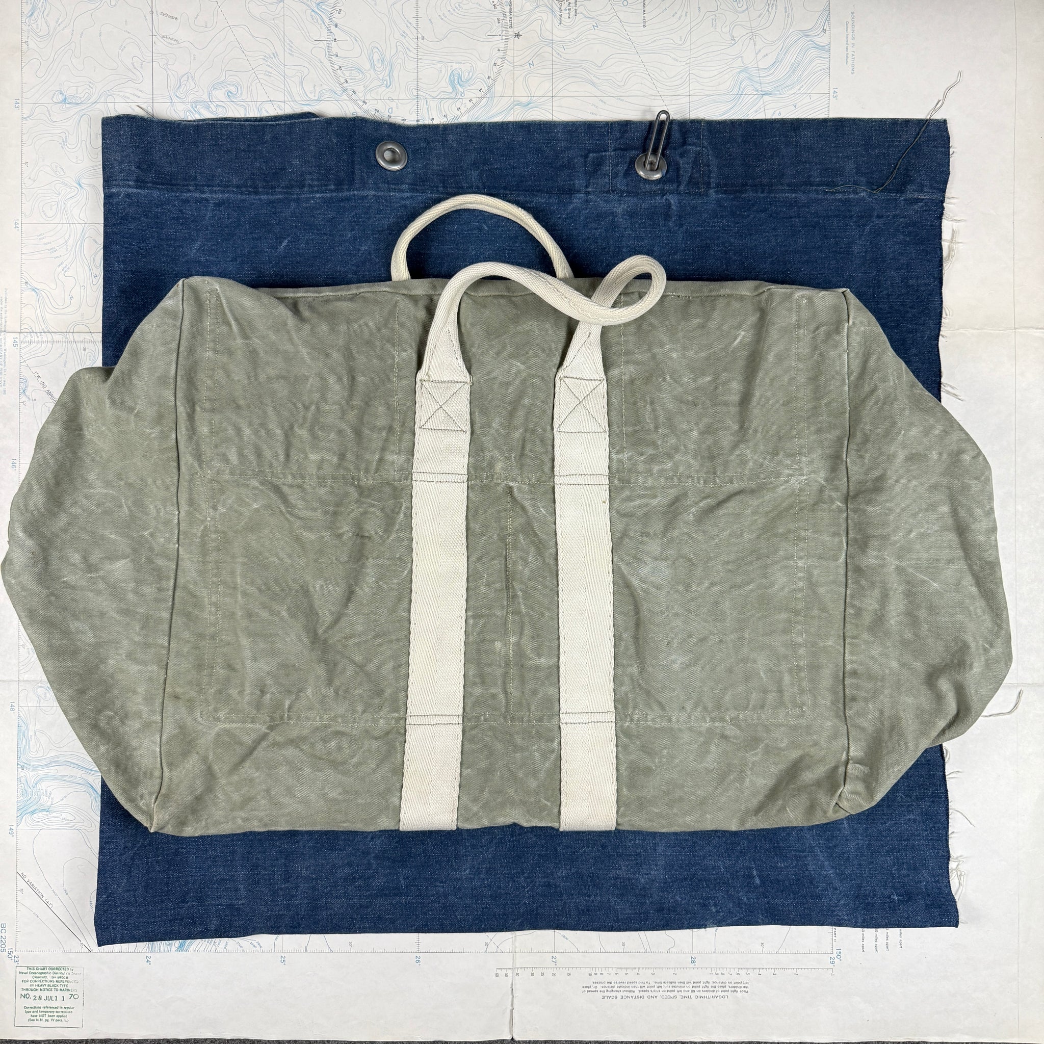 A classic piece of WW2 kit, but this time a nice early US Navy version. The vast majority of these bag are the typical "AN-6505' designation, widely issued during WW2 to both USAAF and Navy aircrew. This example is an earlier version issued only to Navy crews. It comes complete with two lovely 1930s deco style Kiwk zippers, so likely manufactured in the pre/early war period.