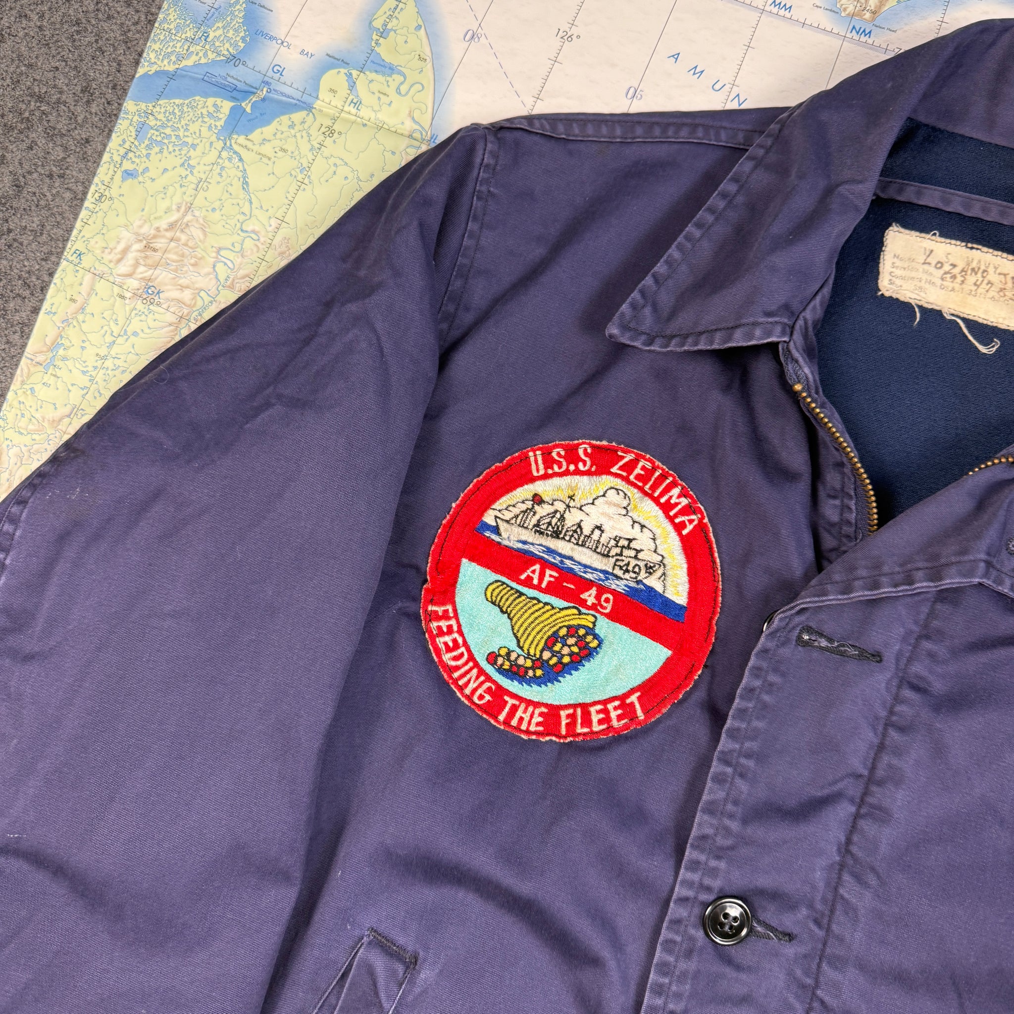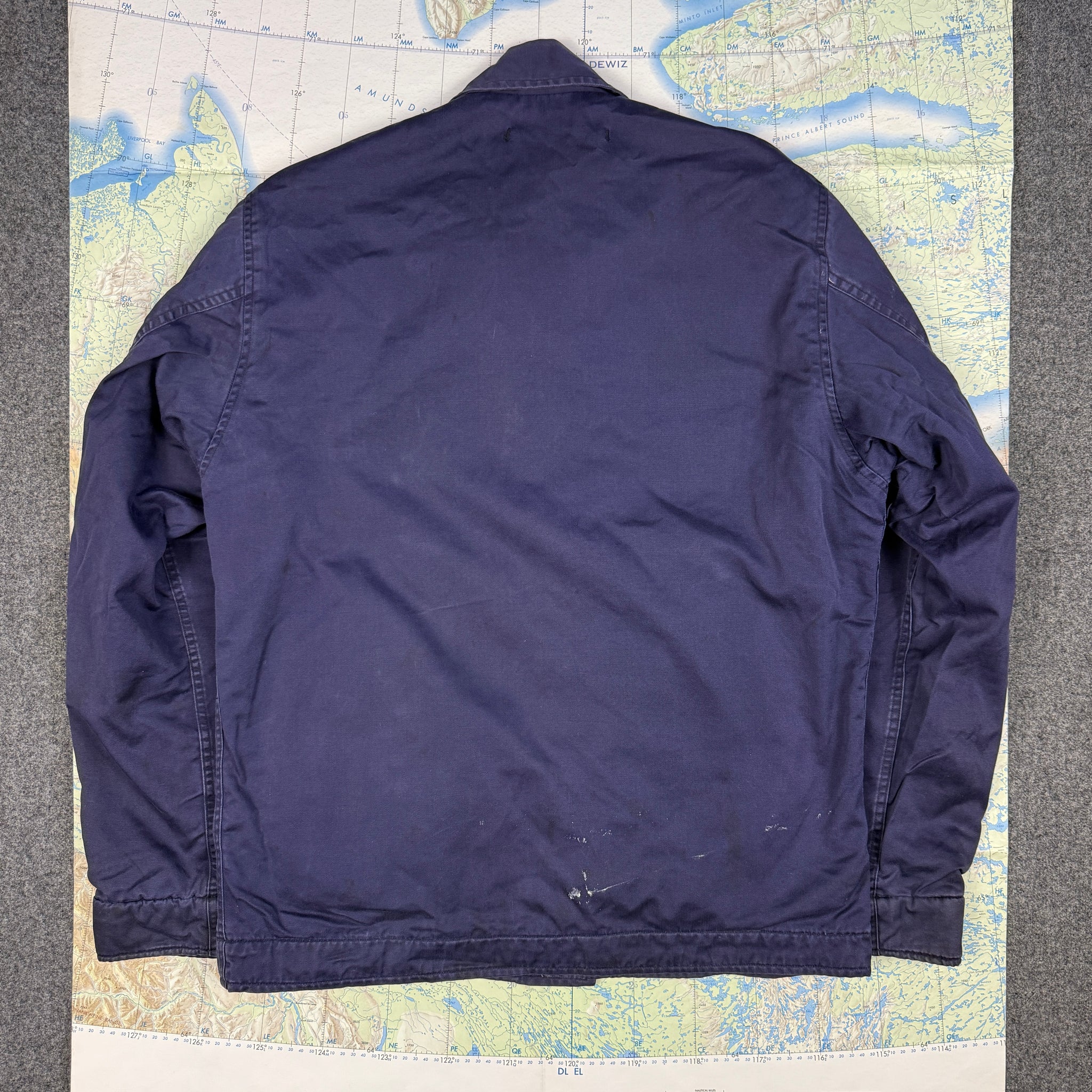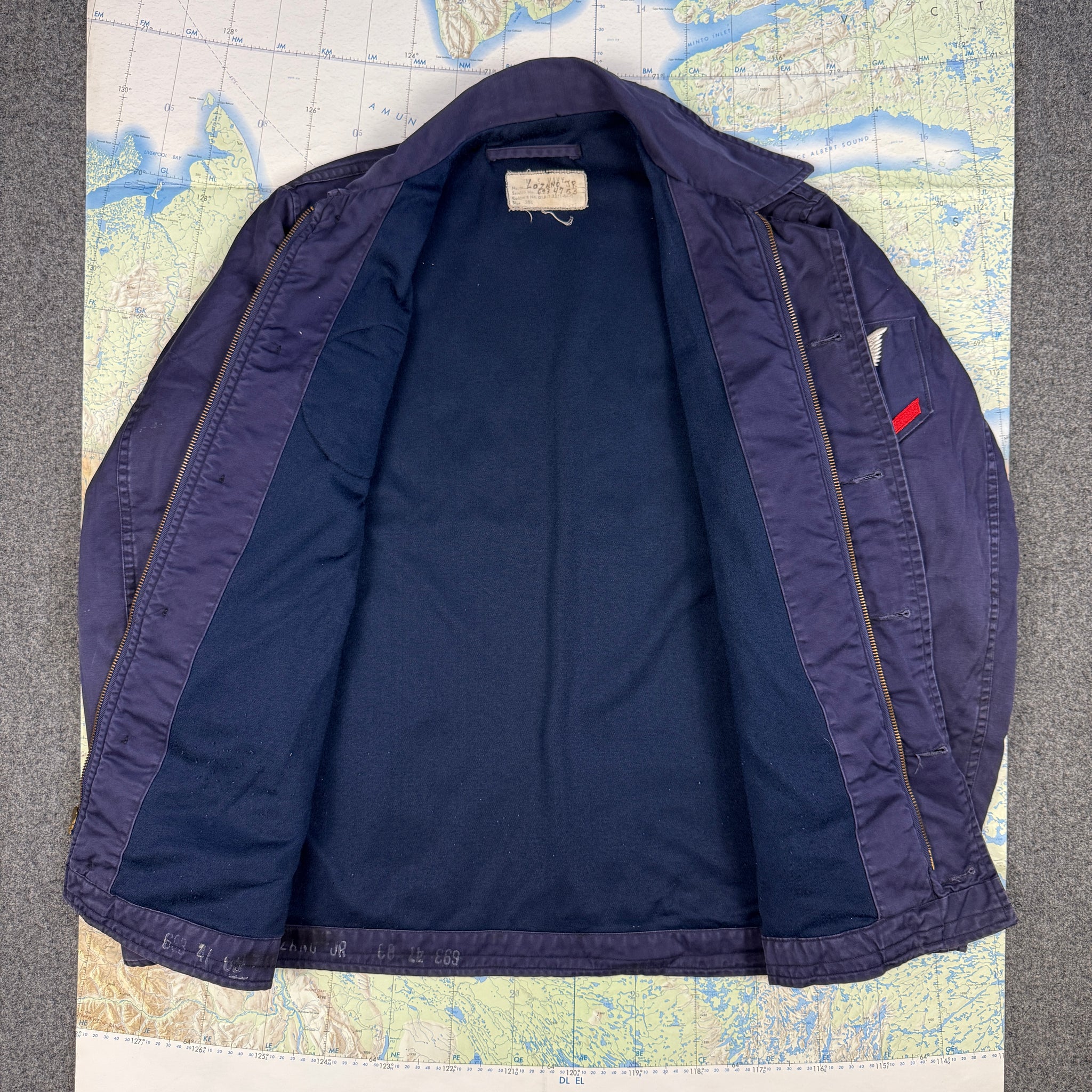 Another classic deck jacket, and actually becoming remarkably hard to find in good condition! These replaced the WW2 era N4 olive deck jackets and retain a lot of the same design, but updated with a much more comfortable lining. These would be worn as standard temperate to cold weather outers during the early 60s, with this particular example serving on the USS Zelima.