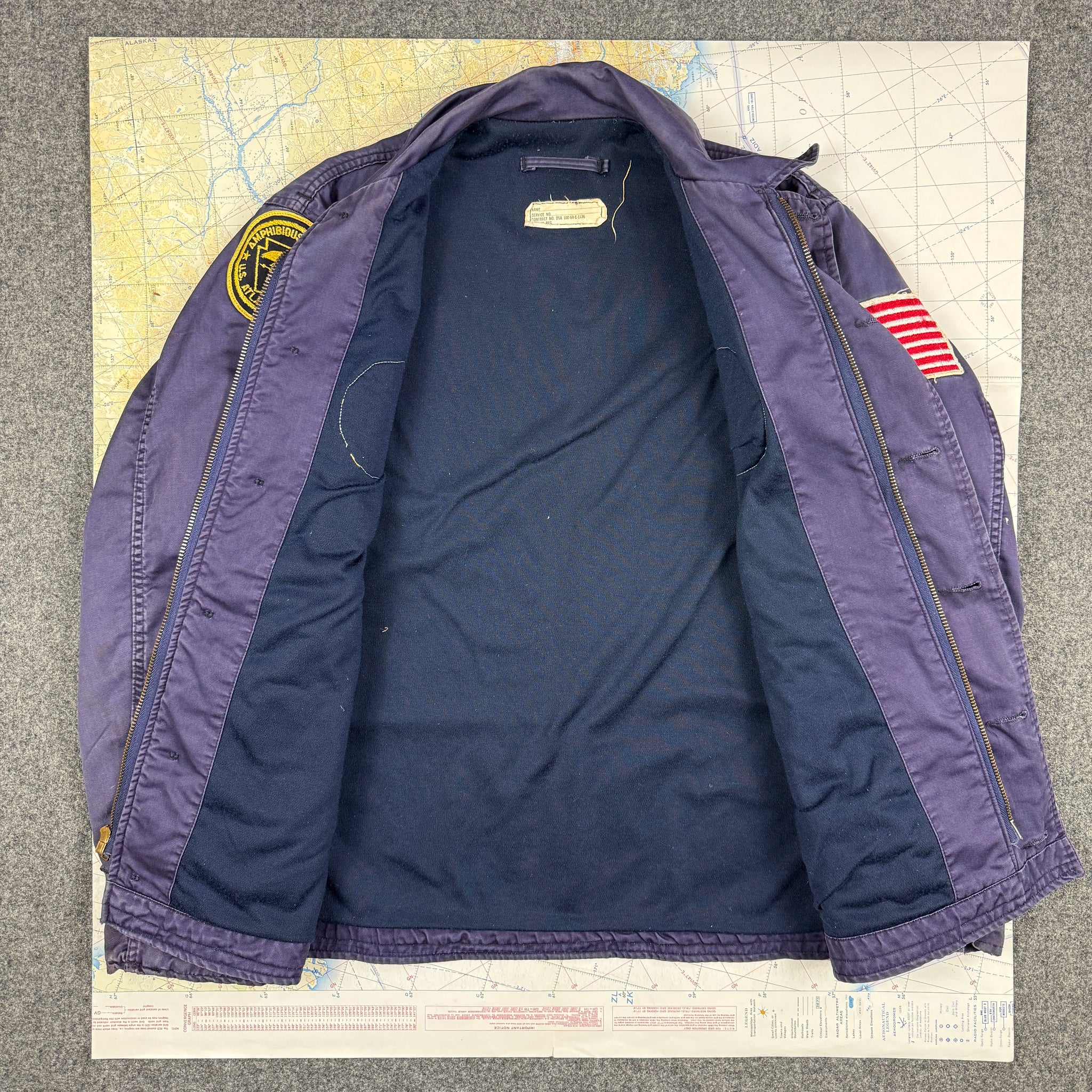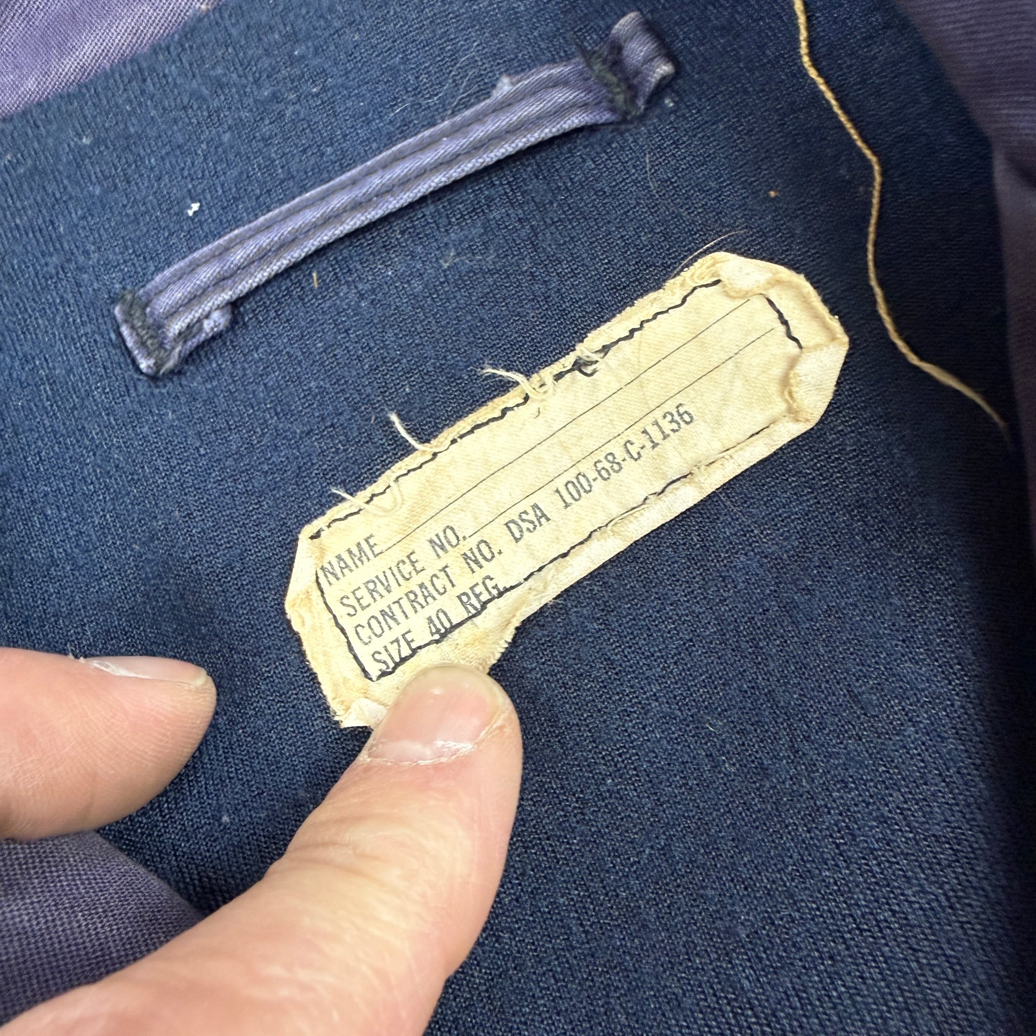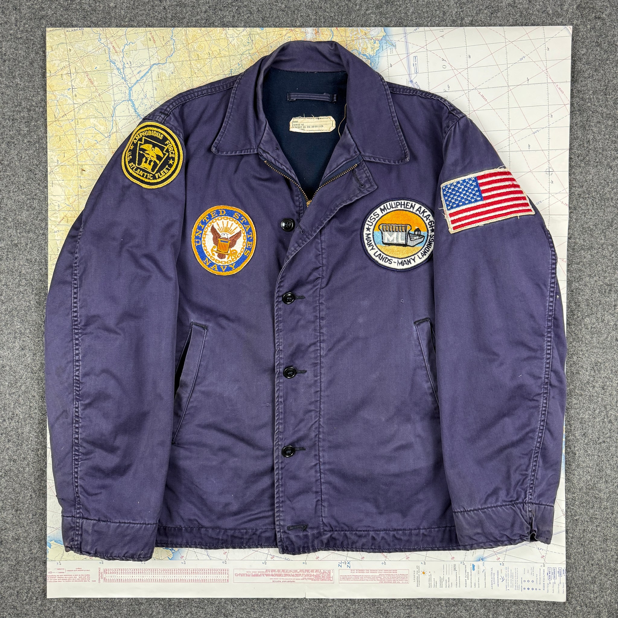 Another classic deck jacket, and actually becoming remarkably hard to find in good condition! These replaced the WW2 era N4 olive deck jackets and retain a lot of the same design, but updated with a much more comfortable lining. These would be worn as standard temperate to cold weather outers during the 60s, with this particular example serving on the Landing Ship USS Muliphen.
