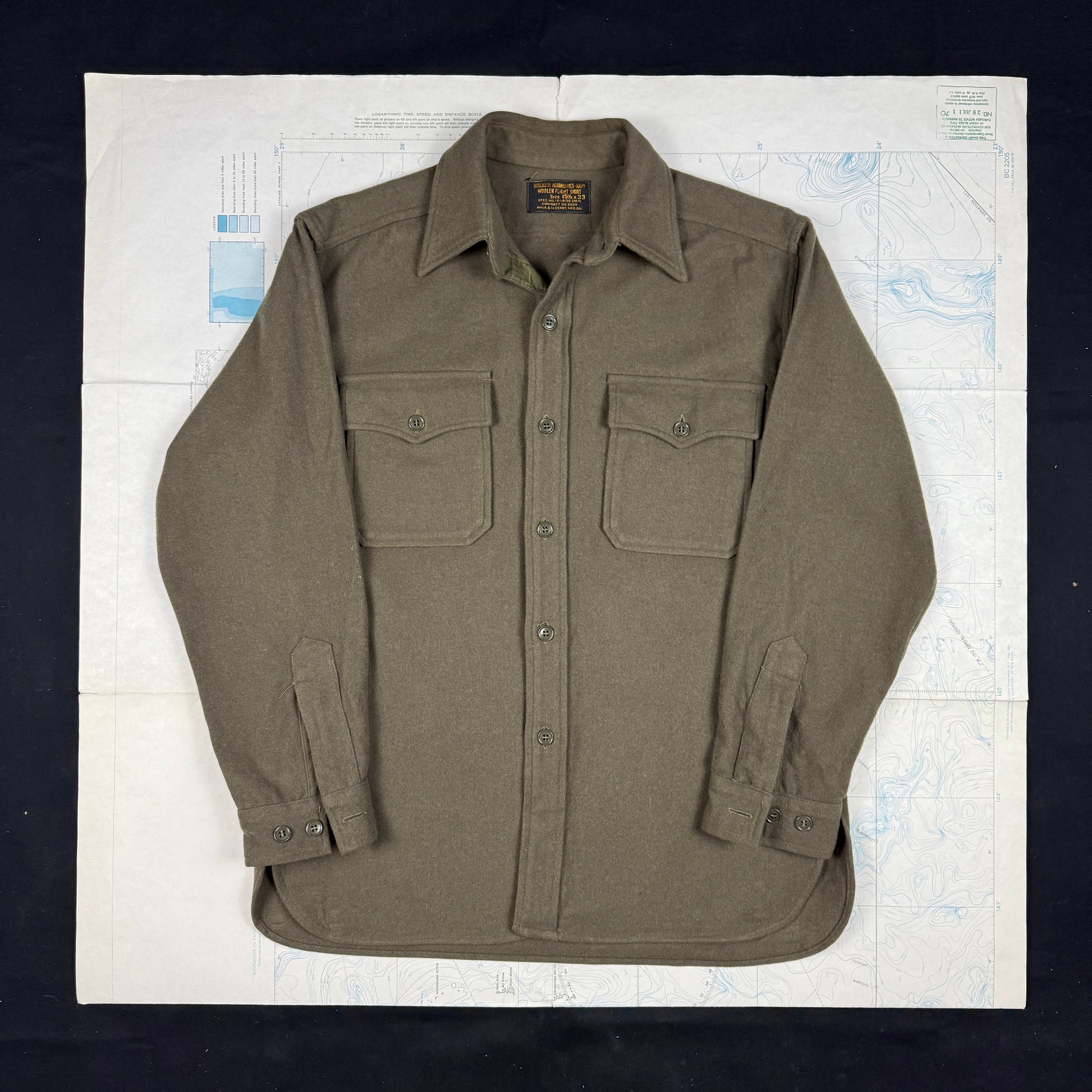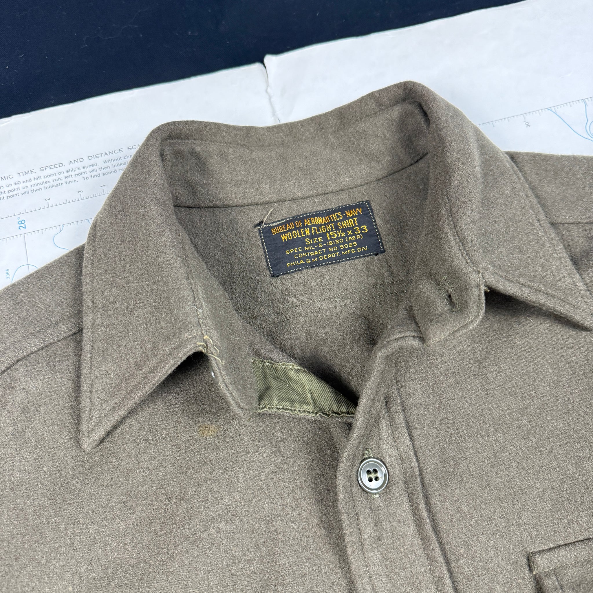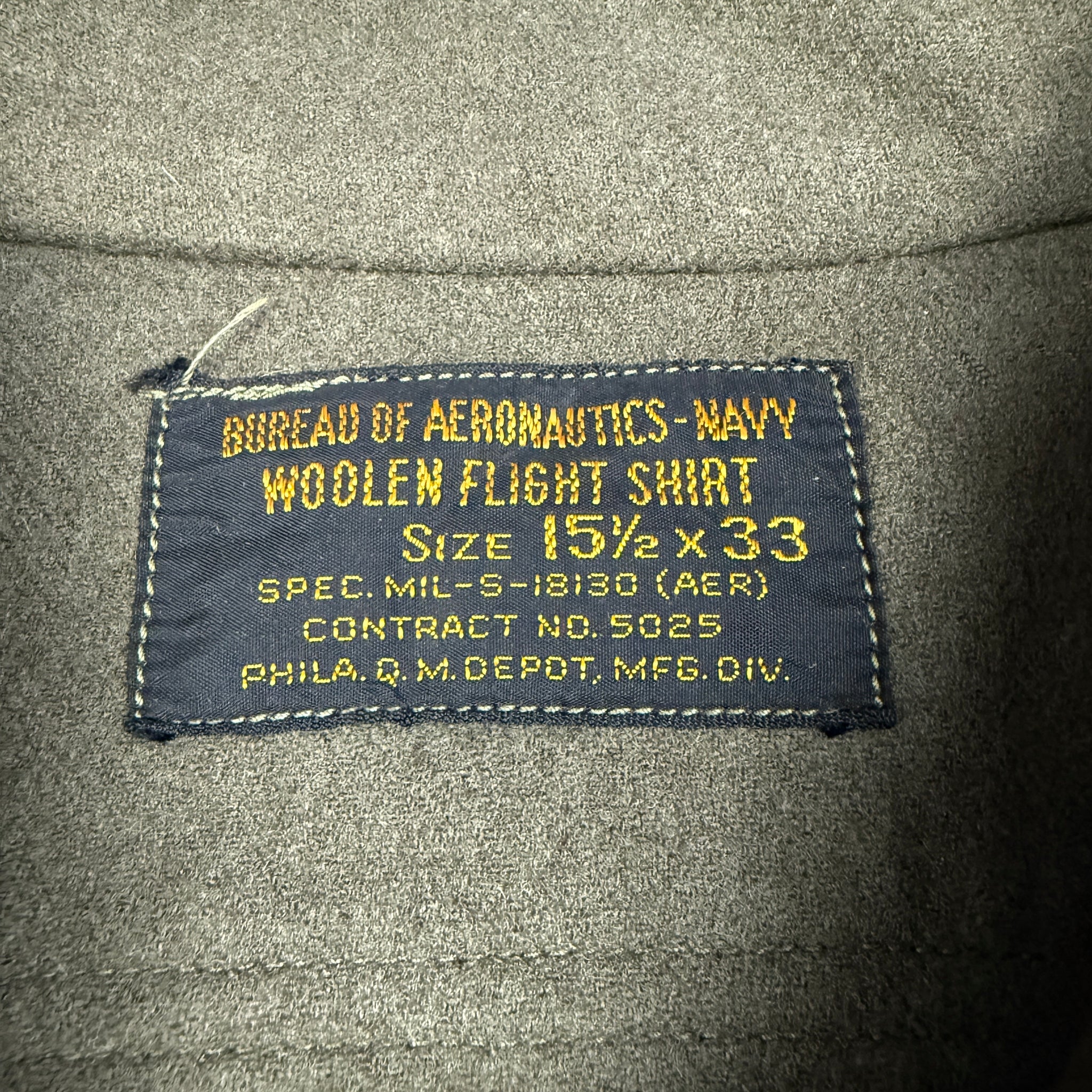 Issued late in the war, these were essentially a slightly heavier version of a CPO shirt but in an olive green colour, and designed specifically for aviators.