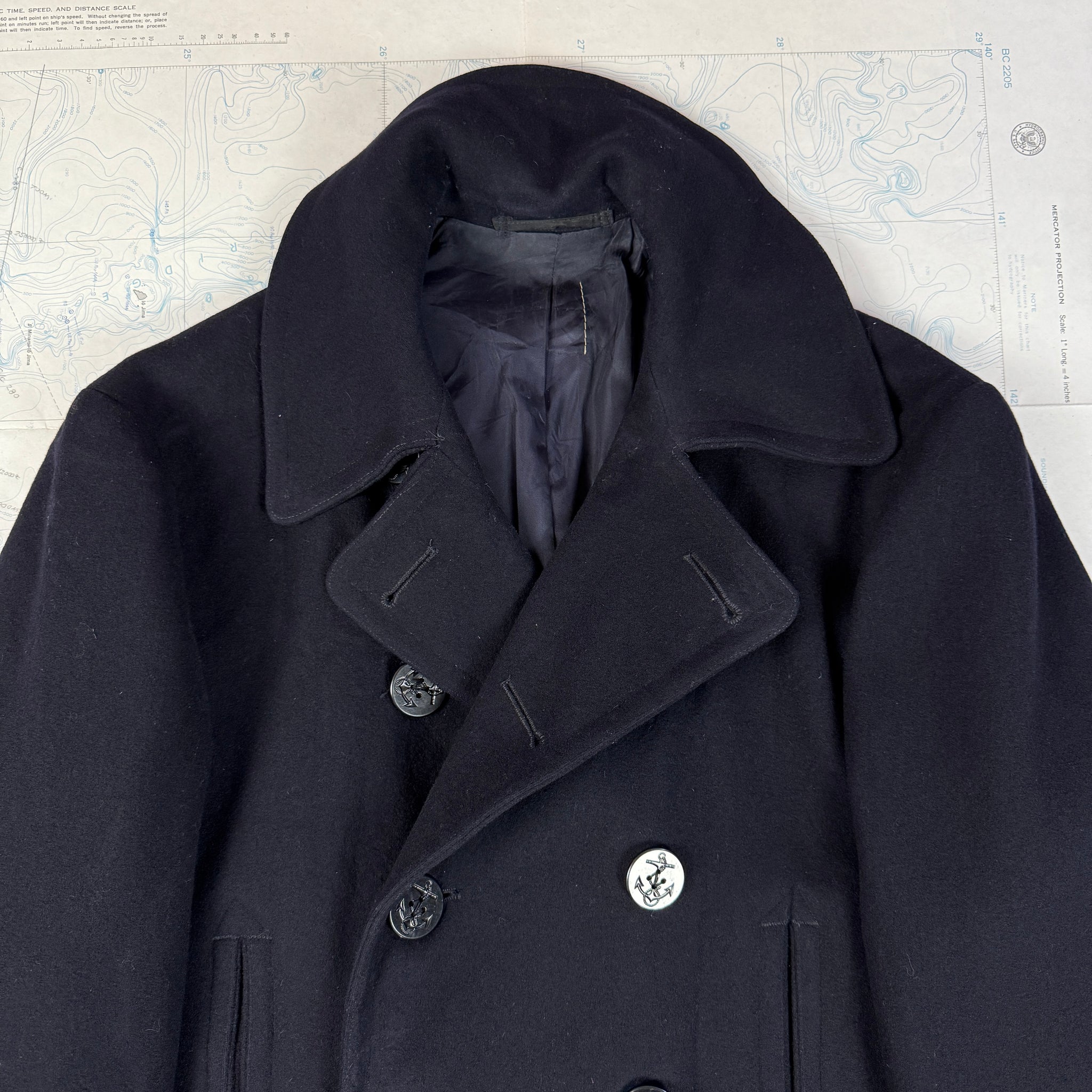 This particular example is from the heyday of the peacoat, WW2.