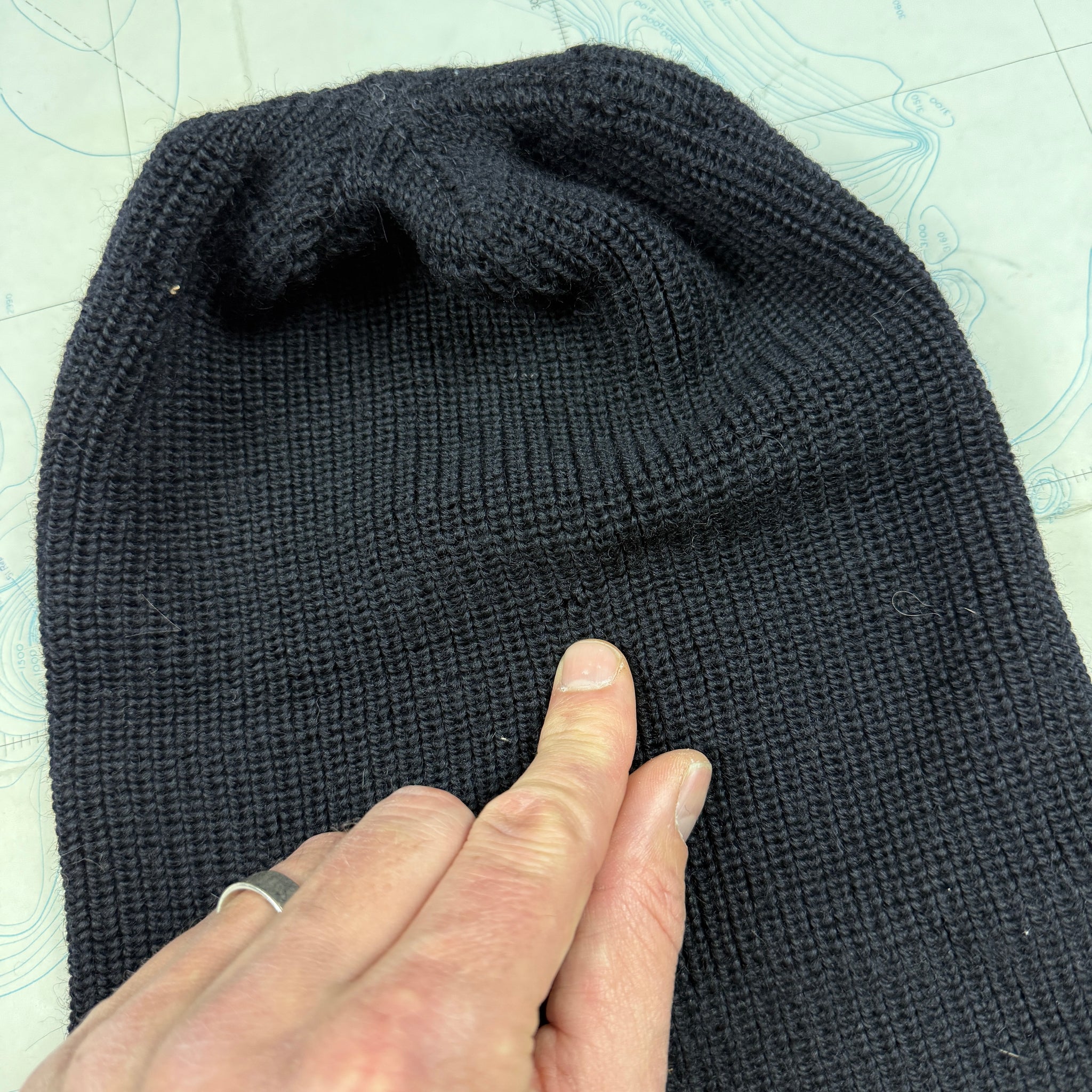 A classic piece of US Navy cold weather gear, and an essential part of any self respecting vintage lovers wardrobe (I wear mine constantly!). This style of cap was used by the US Navy from the 30s through to the 60s, though this is of the classic WW2 style. A tightly knitted wool cap that provides warmth and comfort, and gently stretches to fit any head.