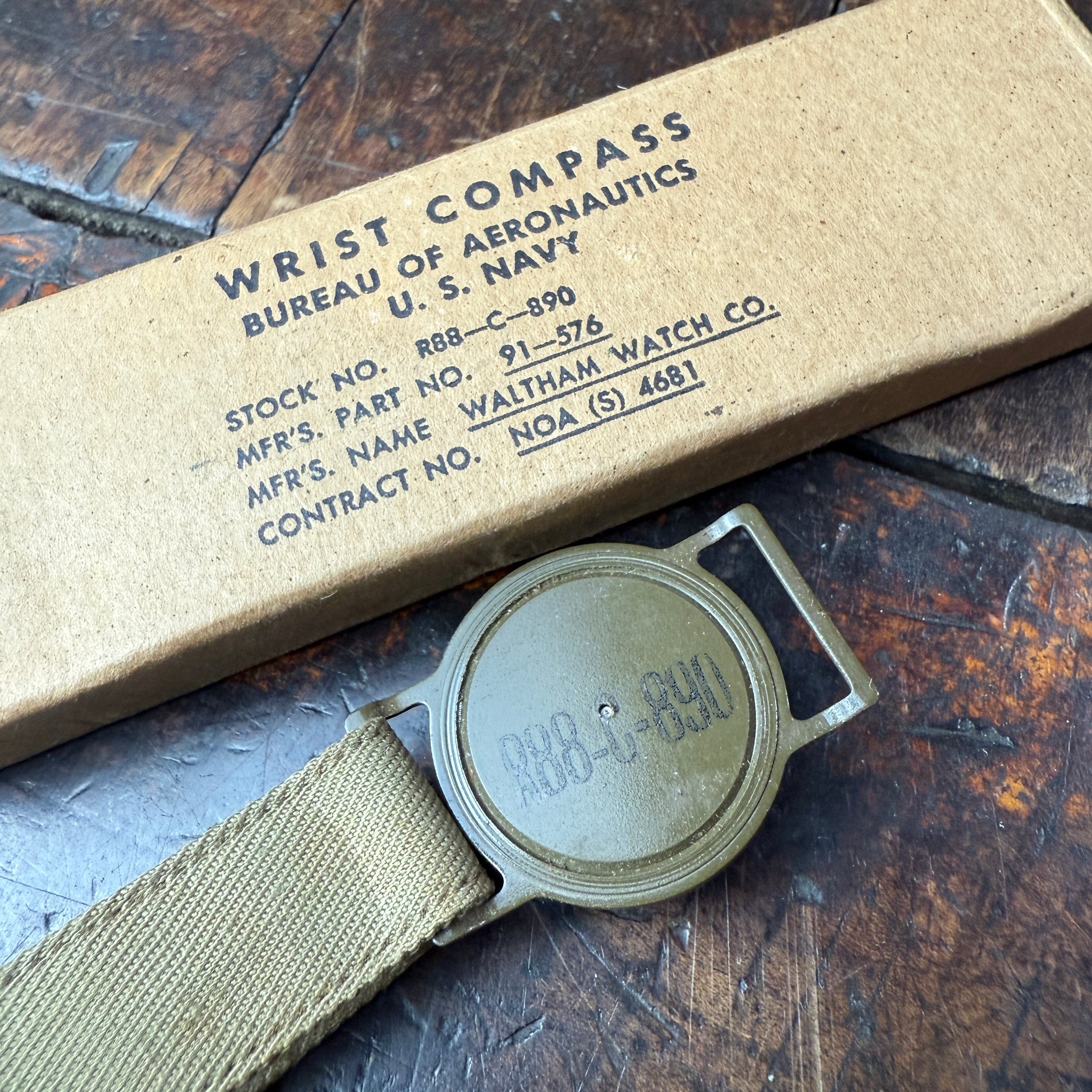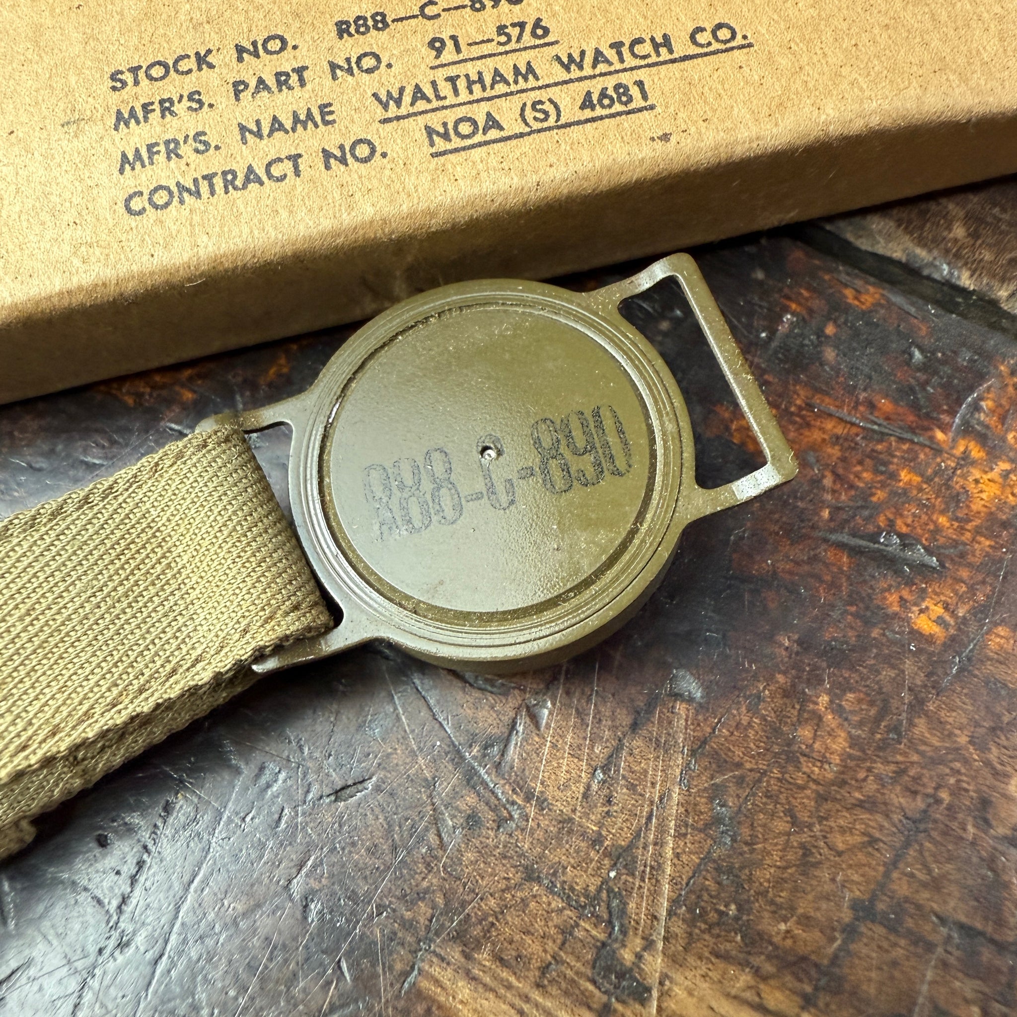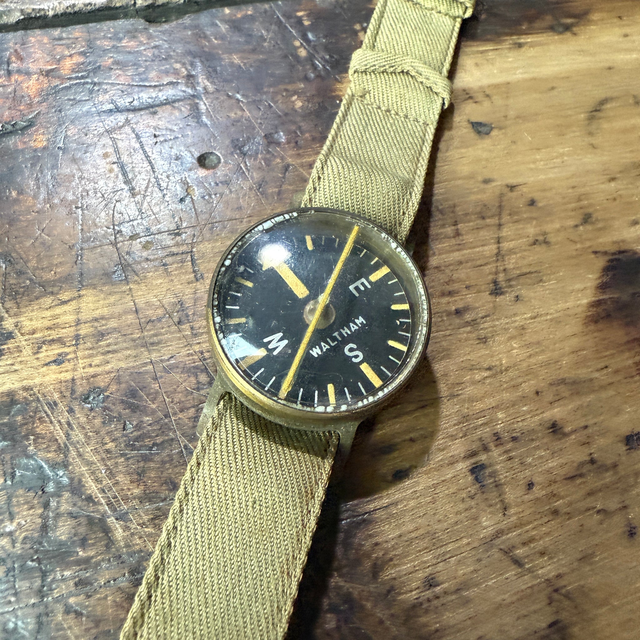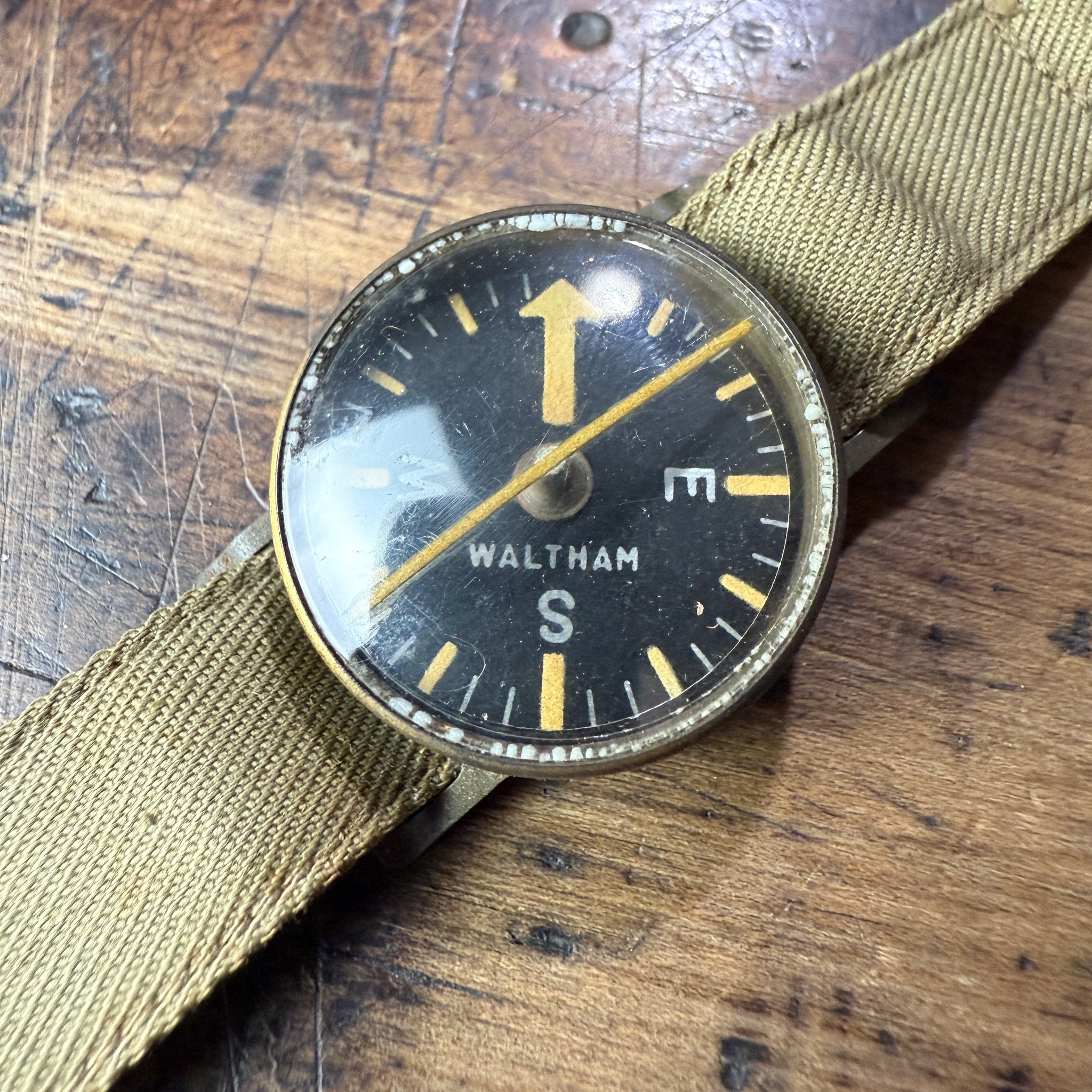 First introduced in service in the late part of WW2 this was designed for US Navy aviators as a backup compass incase their cockpit compass failed, but it also proved somewhat useful in survival situations. This is a late WW2 example comes with the original WW2 strap and WALTHAM signed across the dial, verses WCC on the later iterations.