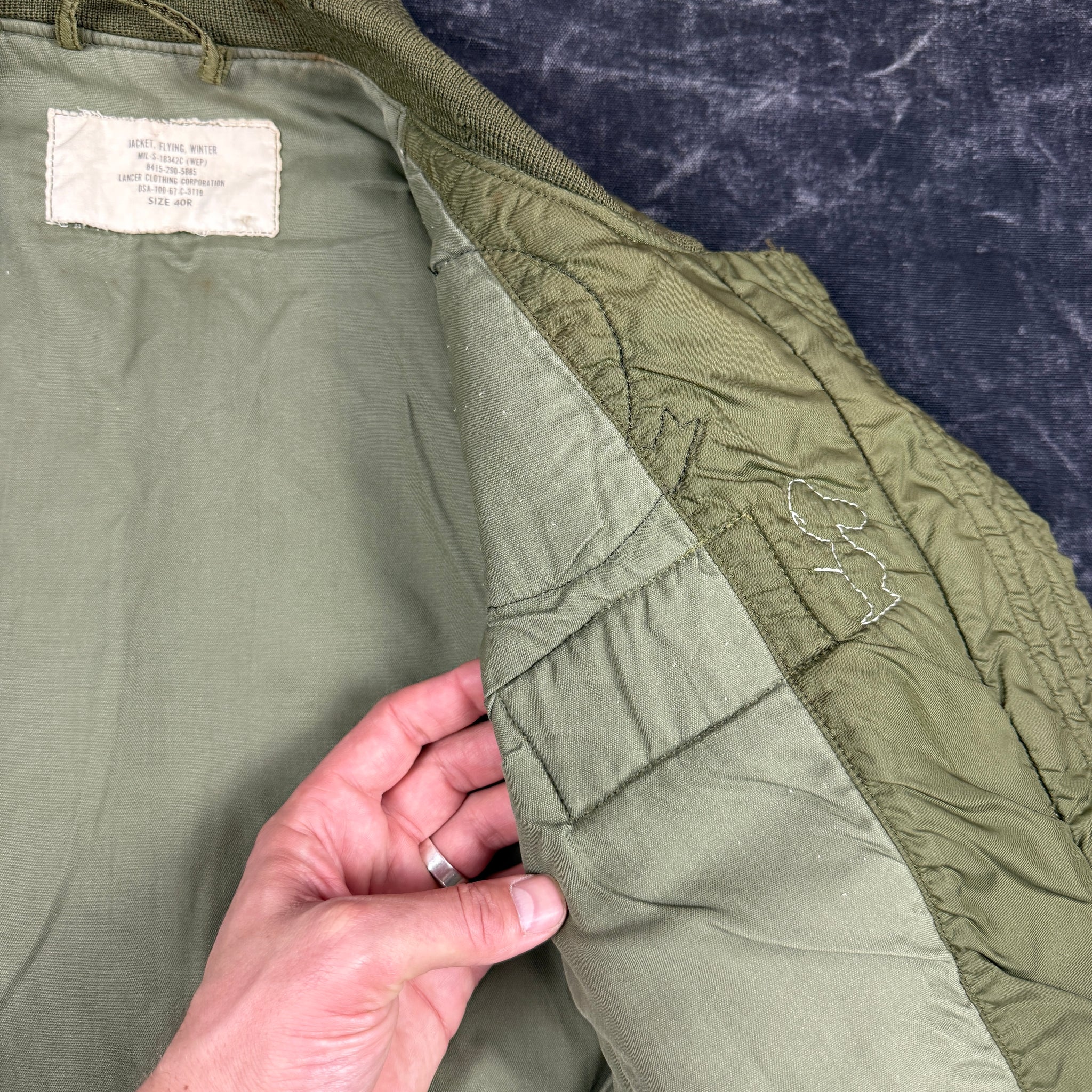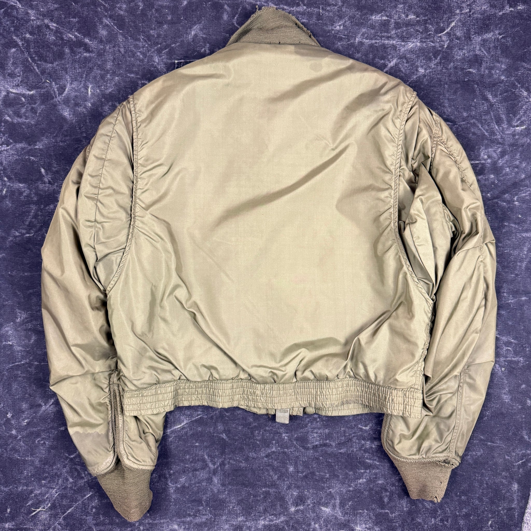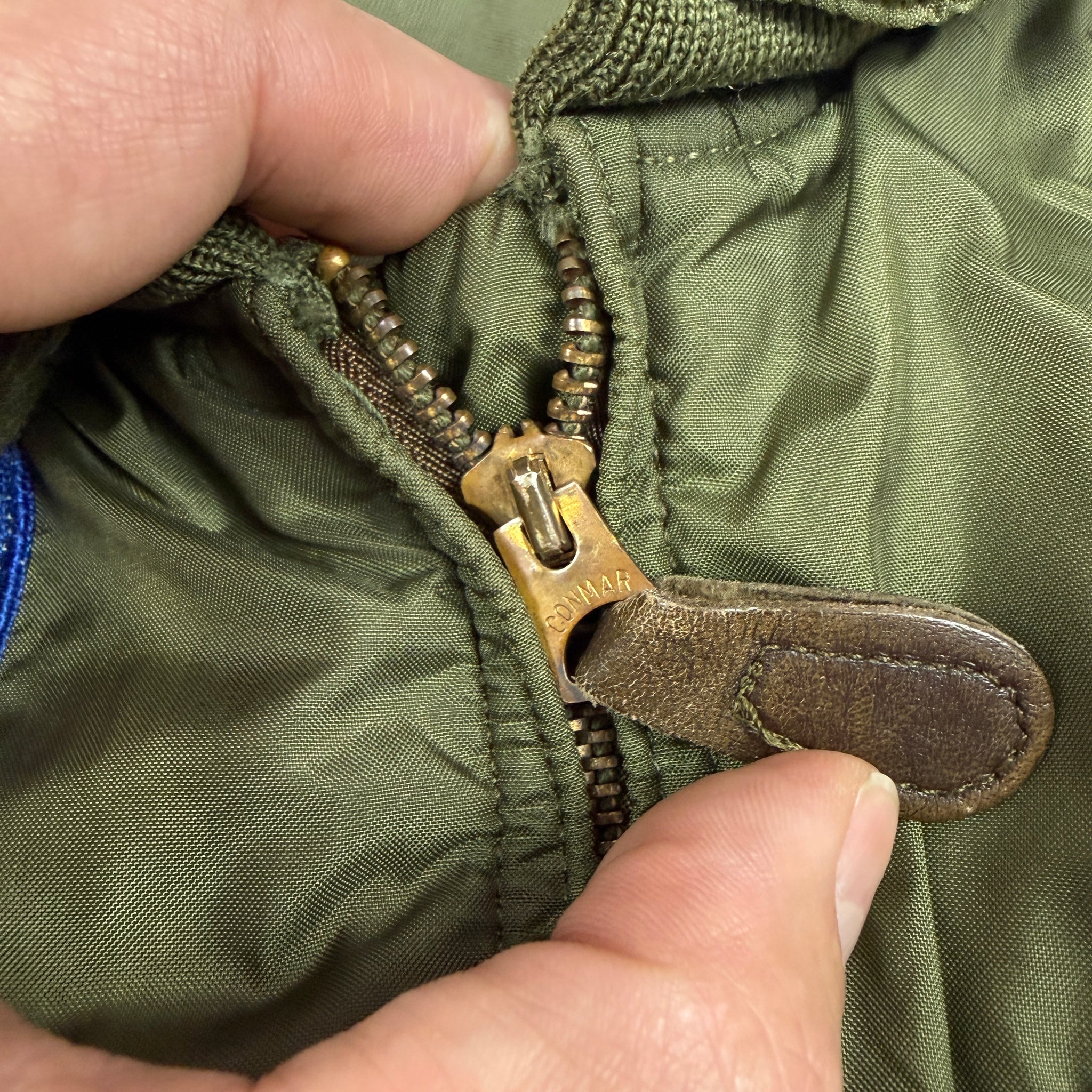 The WEP Jacket was first ordered in the very late 1950s, infact before the Bureau of Aeronautics (AER) became the Bureau of Weapons (WEP) from which the WEP jacket takes its name. This example dates to 1967, and features patches that show it belonged to a USMC pilot flying Skyhawks.