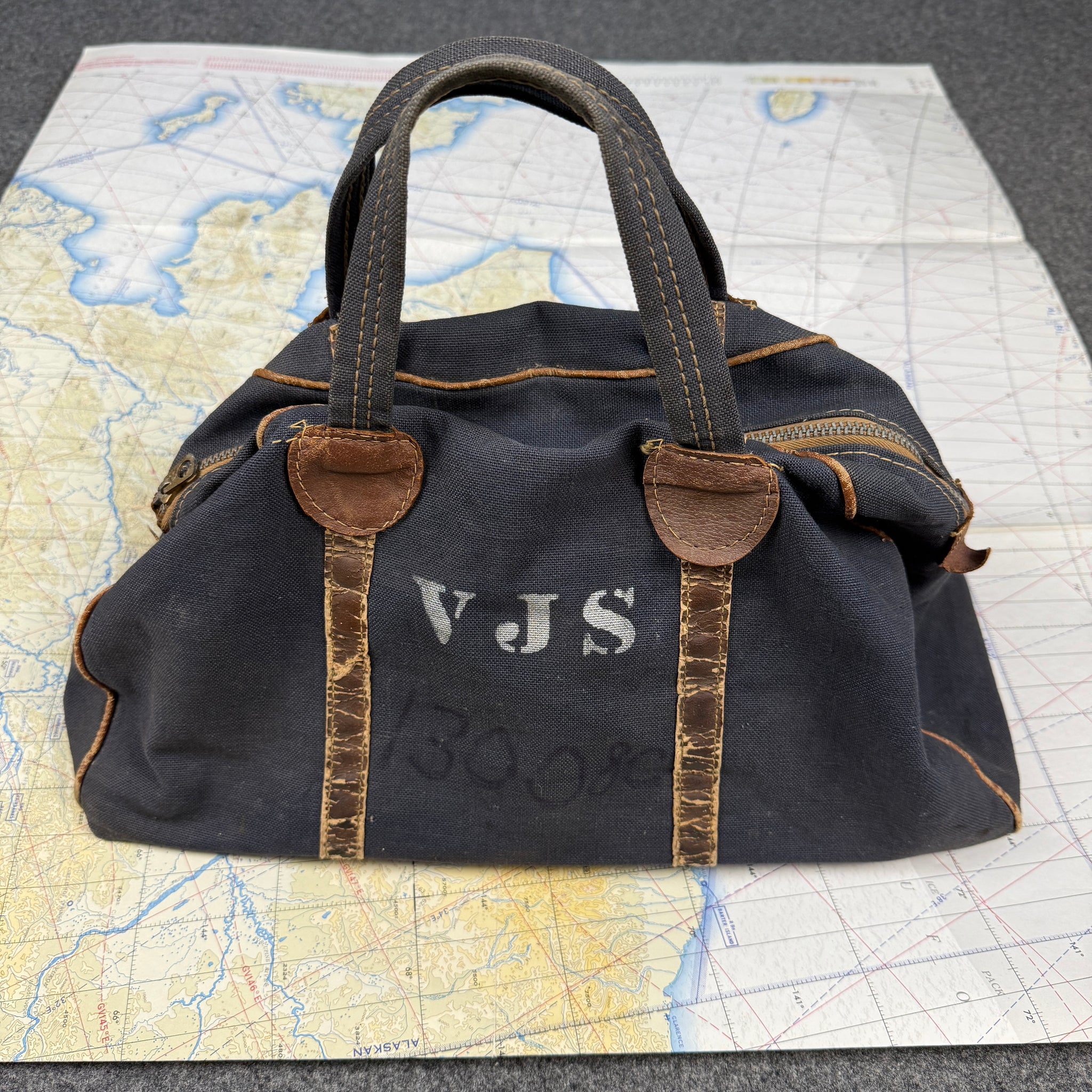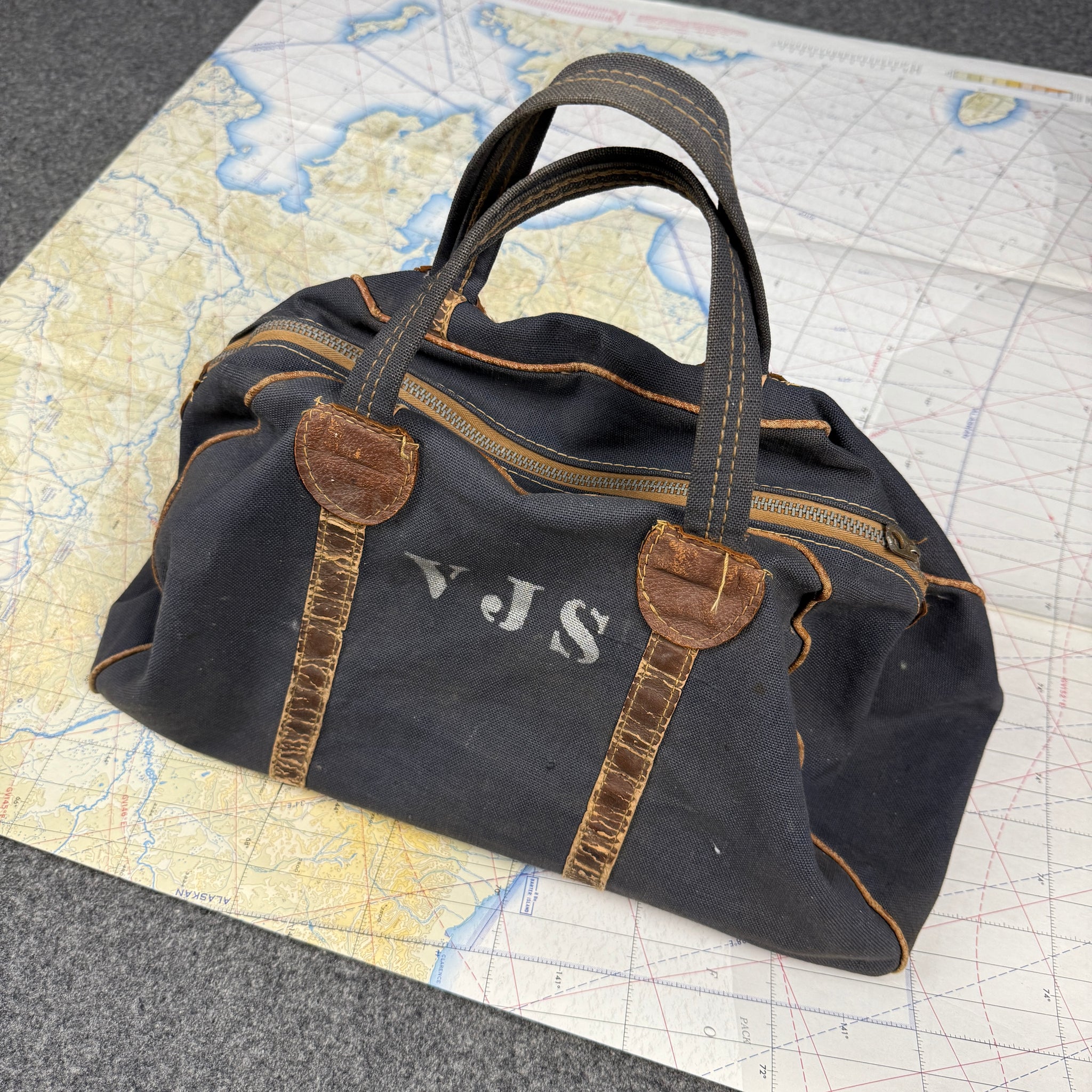 A nice example of a private purchase personal kit bag, likely used by a Navy sailor. The style of Talon zipper is a classic late 30s to early 40s, putting the manufacturing of this bag likely in the pre-early ww2 period.